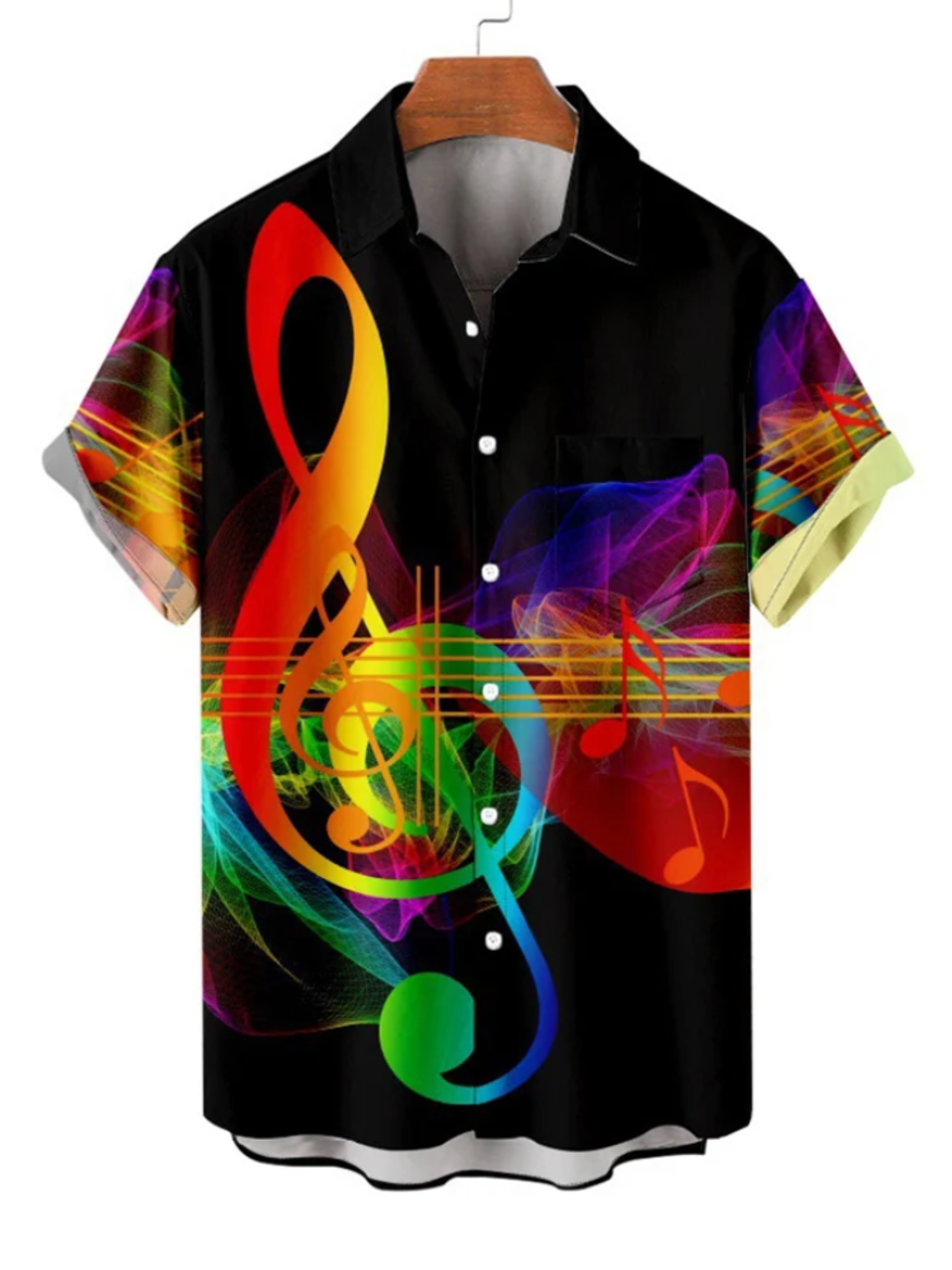 Colorful Musical Note Print Casual Shirt, Hawaiian shirt for men