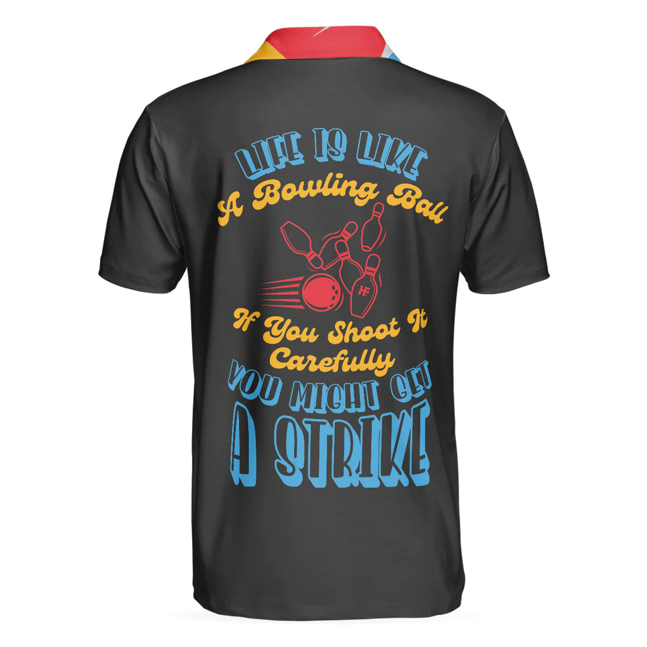 Colorful Tenpin Bowling Men Polo Shirt, Life Is Like A Bowling Ball Shirt For Male, Gift Idea For Bowling Lovers
