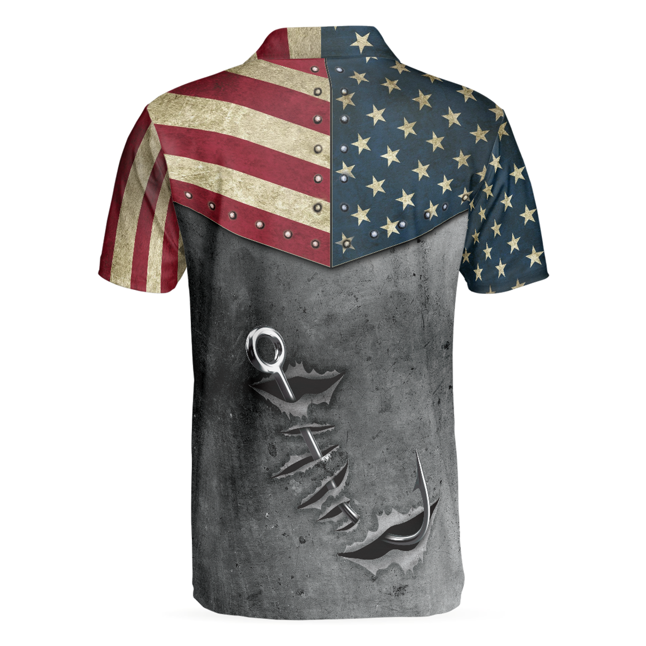 Crack Fishing American Flag Short Sleeve Polo Shirt, Patriotic Polo Shirt, Best Fishing Shirt For Men