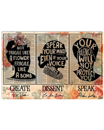 Create Frida Kahlo Dissent Ruth Bader Ginsburg Speak Michelle Obama Feminists Flowers Poster and Canvas