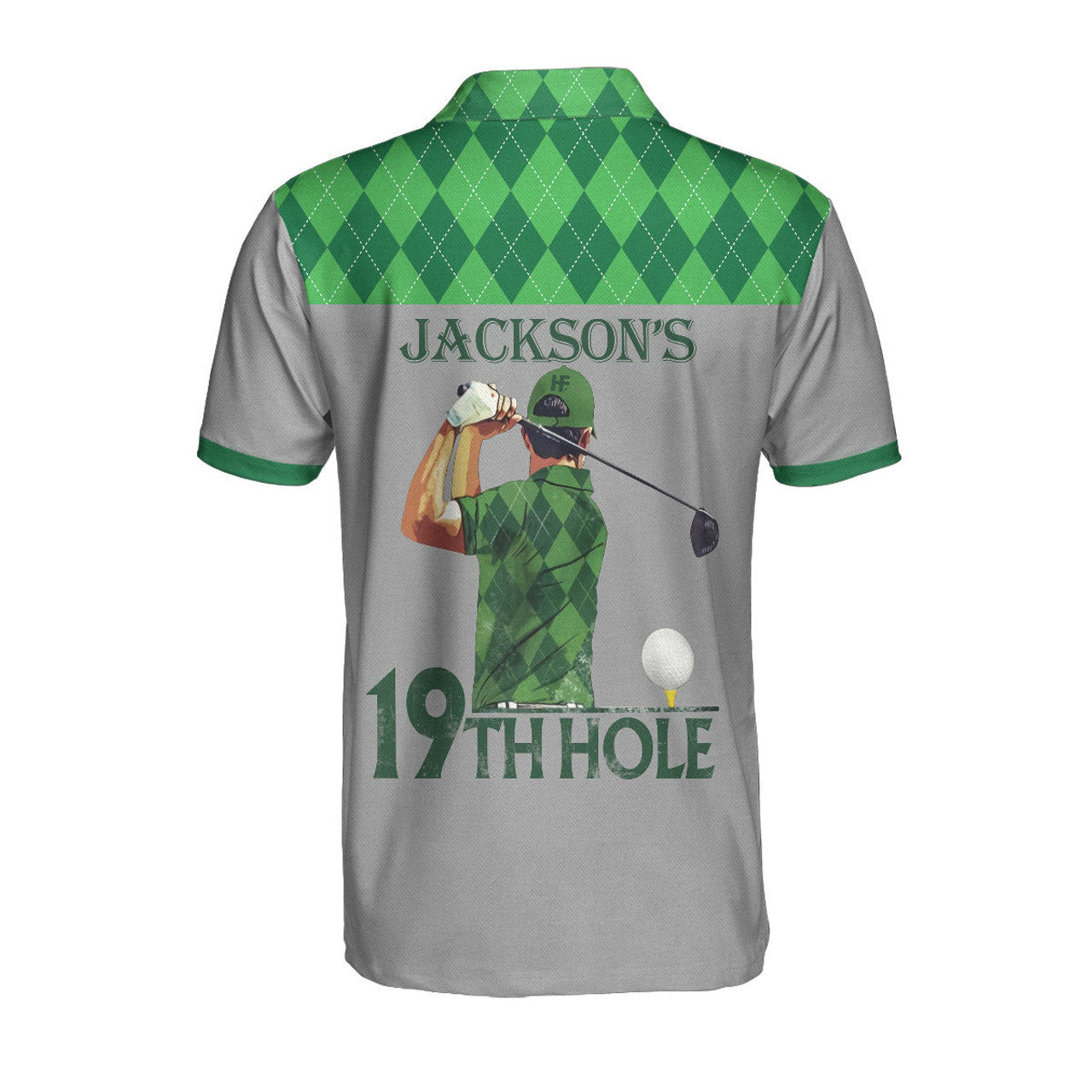 Custom 19th Hole Custom Men Polo Shirt, Green Argyle Pattern Golf Shirt For Men, Personalized Golf Gift For Golfers