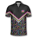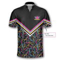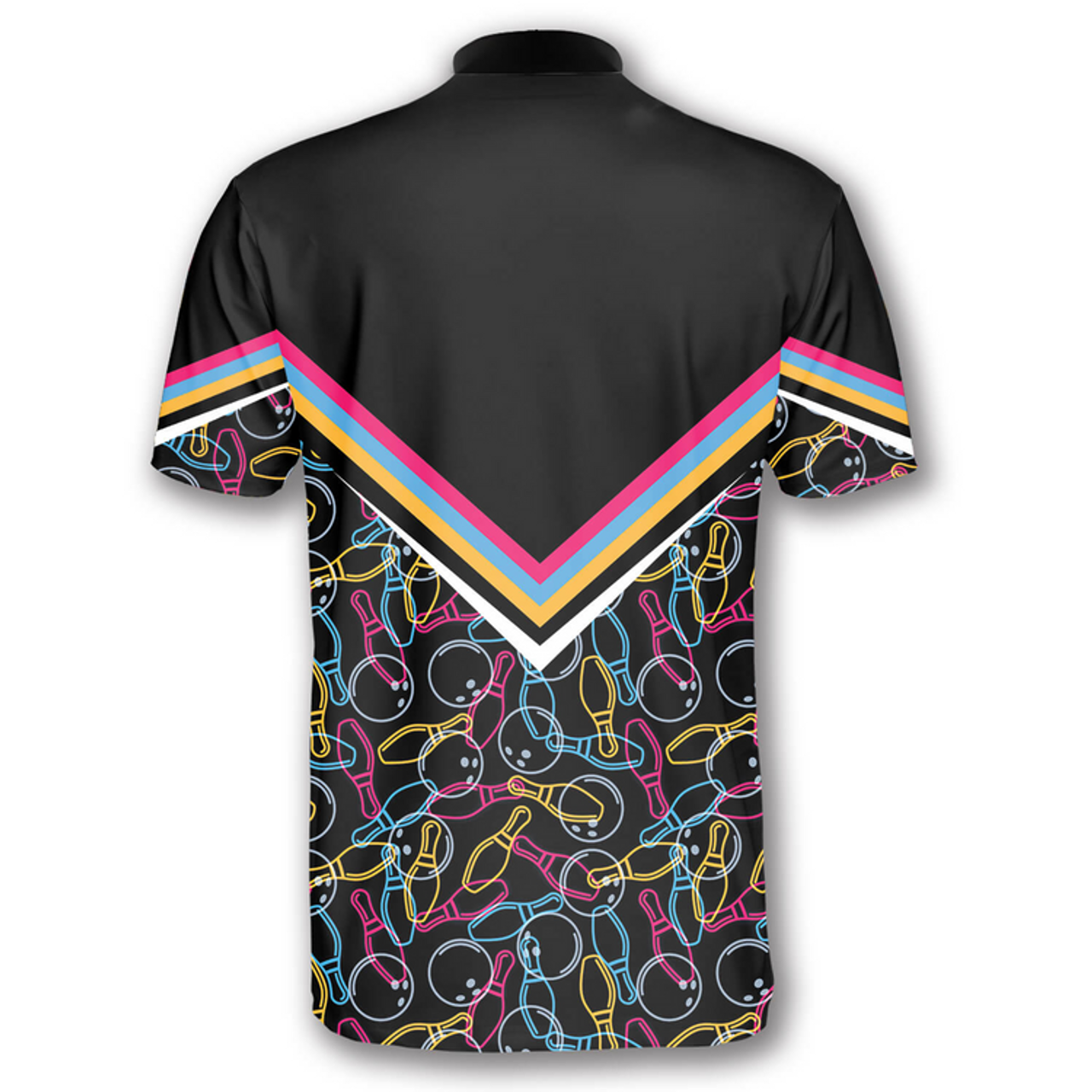 Custom Zipper Polo Shirt Bowling Pattern In Black Colorful Lines Custom Bowling Jerseys for Men