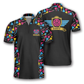 Custom Zipper Polo Shirt Dart Arrow Pattern Navy Custom Darts Jerseys for Men, Personalized Name Dart Shirt