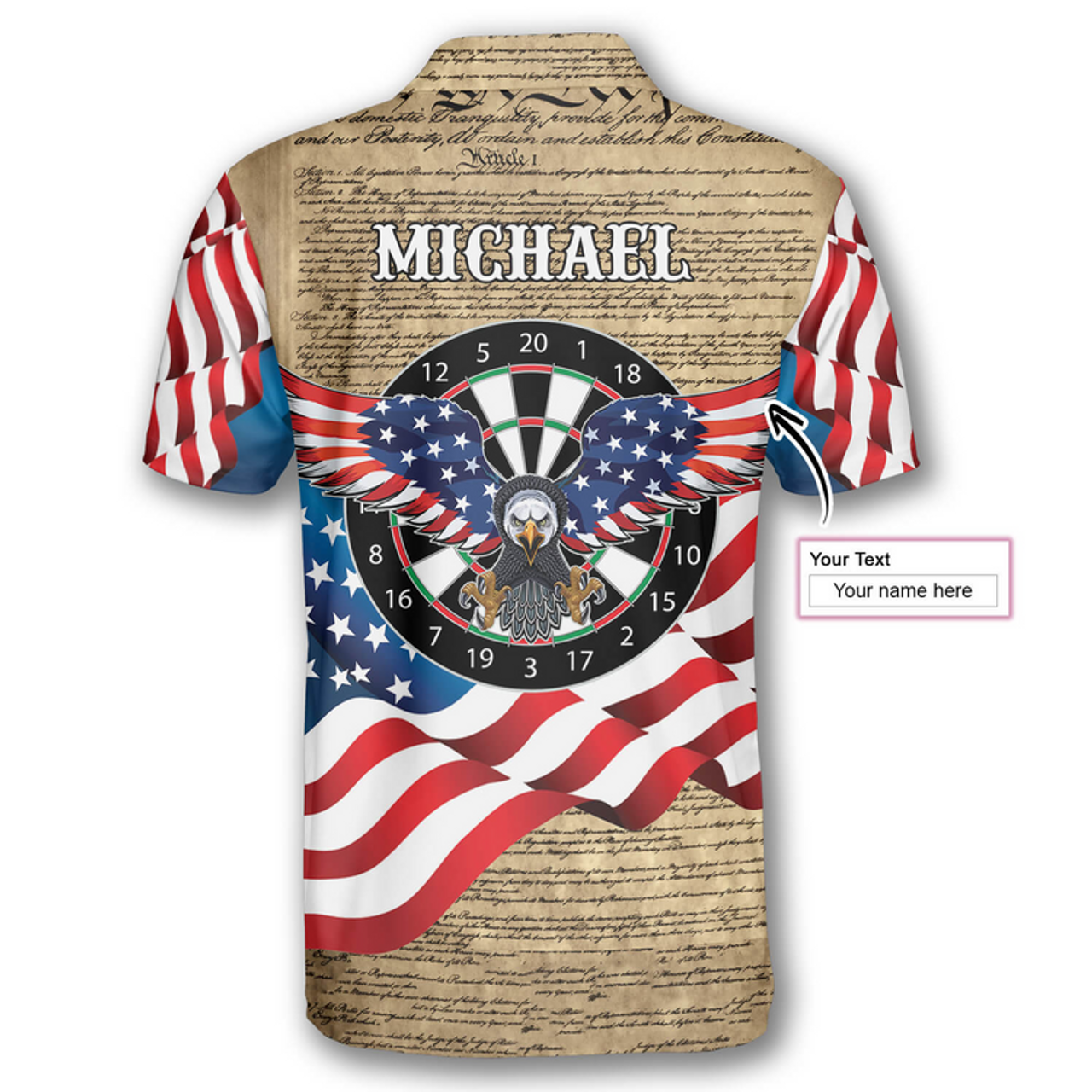 Custom 3D All Over Print Darts Eagle Waving Flag Custom Polo Shirts for Men