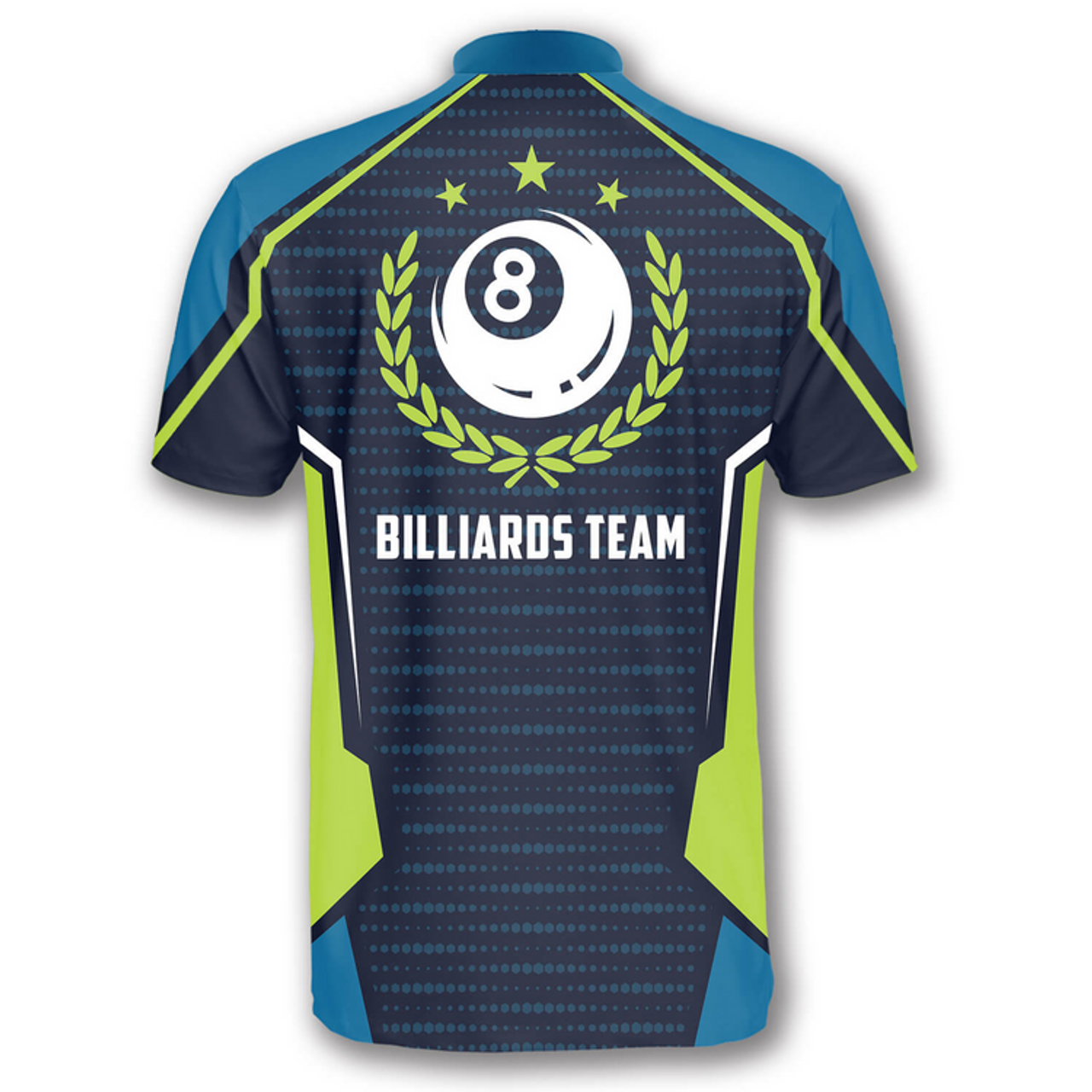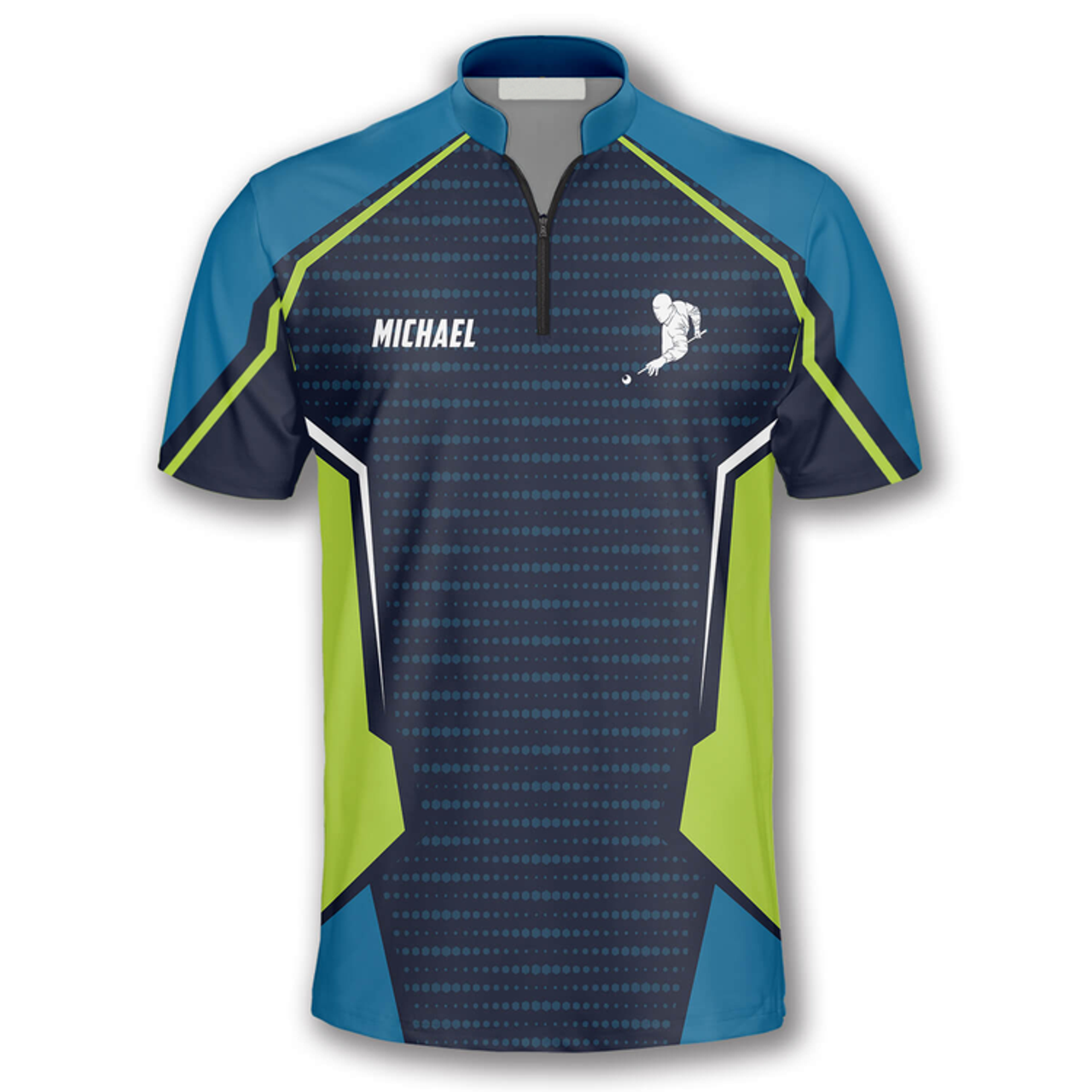 Custom Zipper Polo Shirt Green Blue Dot Lines Custom Billiard Jerseys for Men, Personalized Billiard Shirt