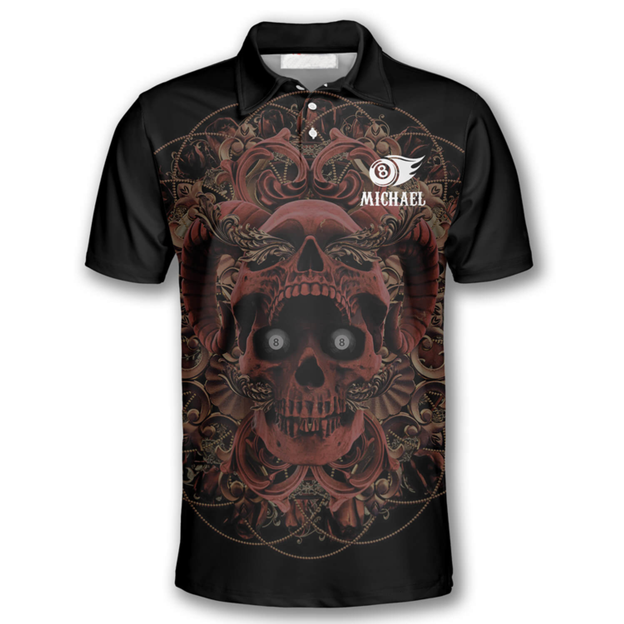 Custom 3D All Over Print Red Skull Custom Billiard Shirts For Men, Skull Shirt, Billiard Shirt