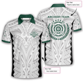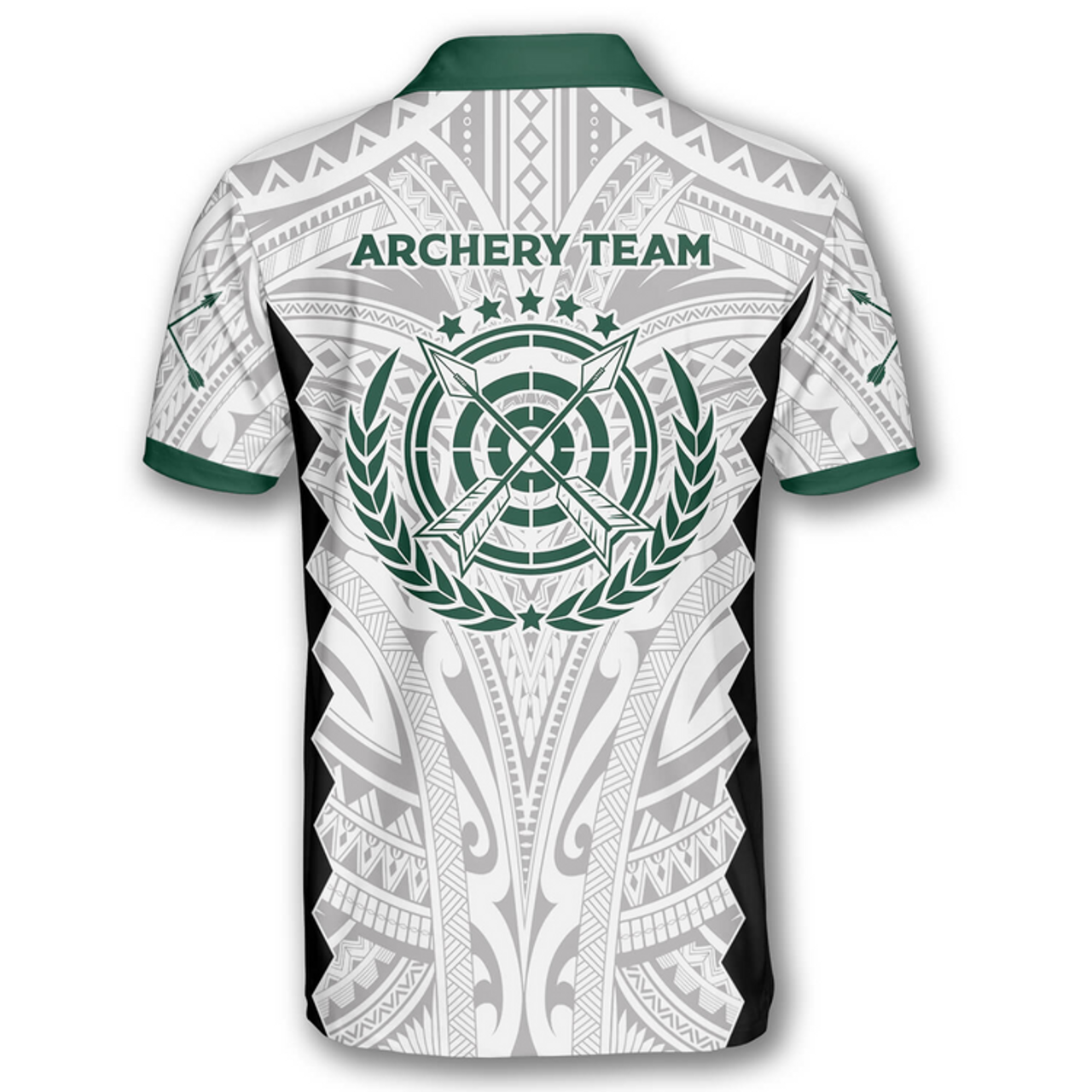 Custom 3D All Over Print Tribal White Green Custom Archery Polo Shirts For Men