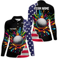Custom American Flag Black Women Golf Polo Shirt Custom Colorful Paint Golf Shirts, Patriot Ladies Golf Tops