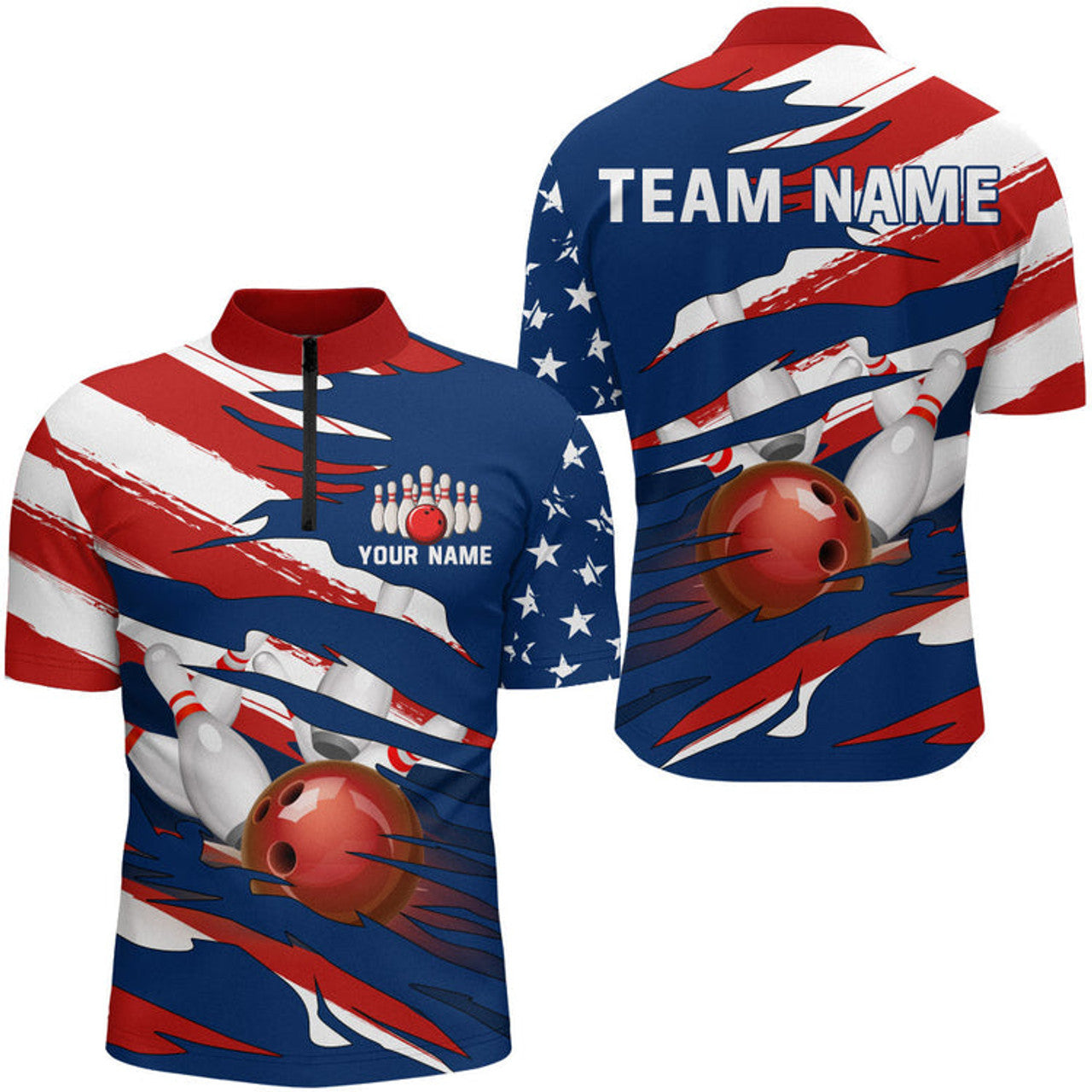 Custom American Flag Bowling Quarter-Zip Shirt Custom Bowling Jersey for Men Bowling Team League