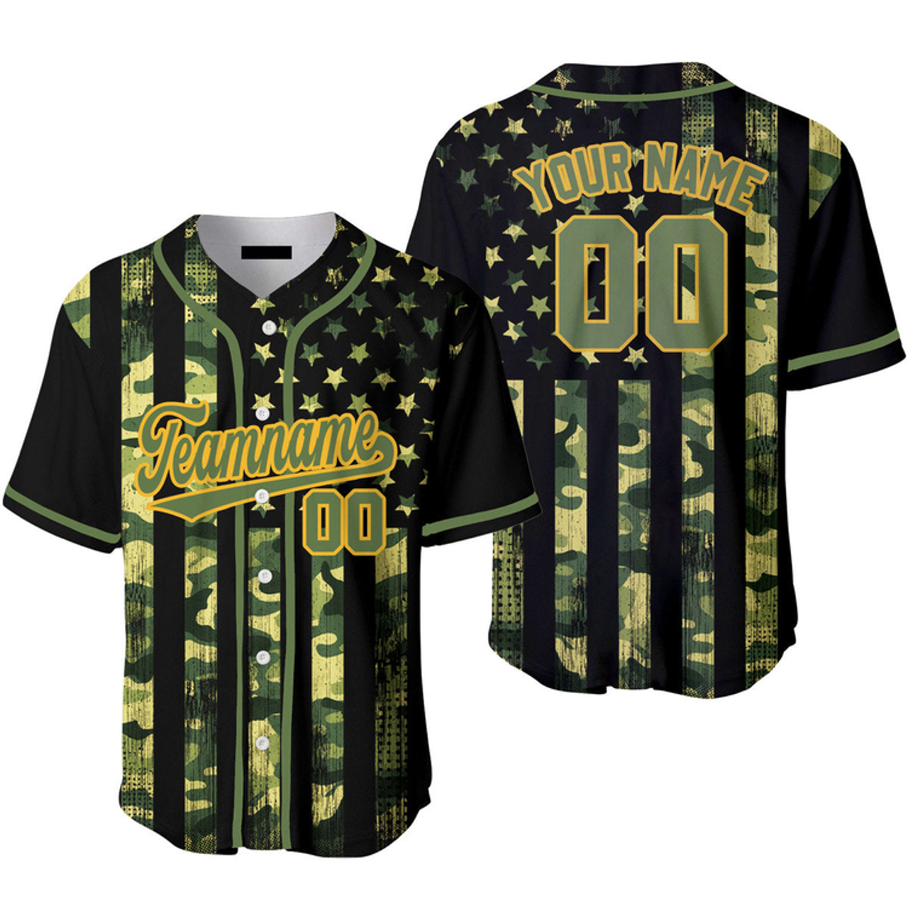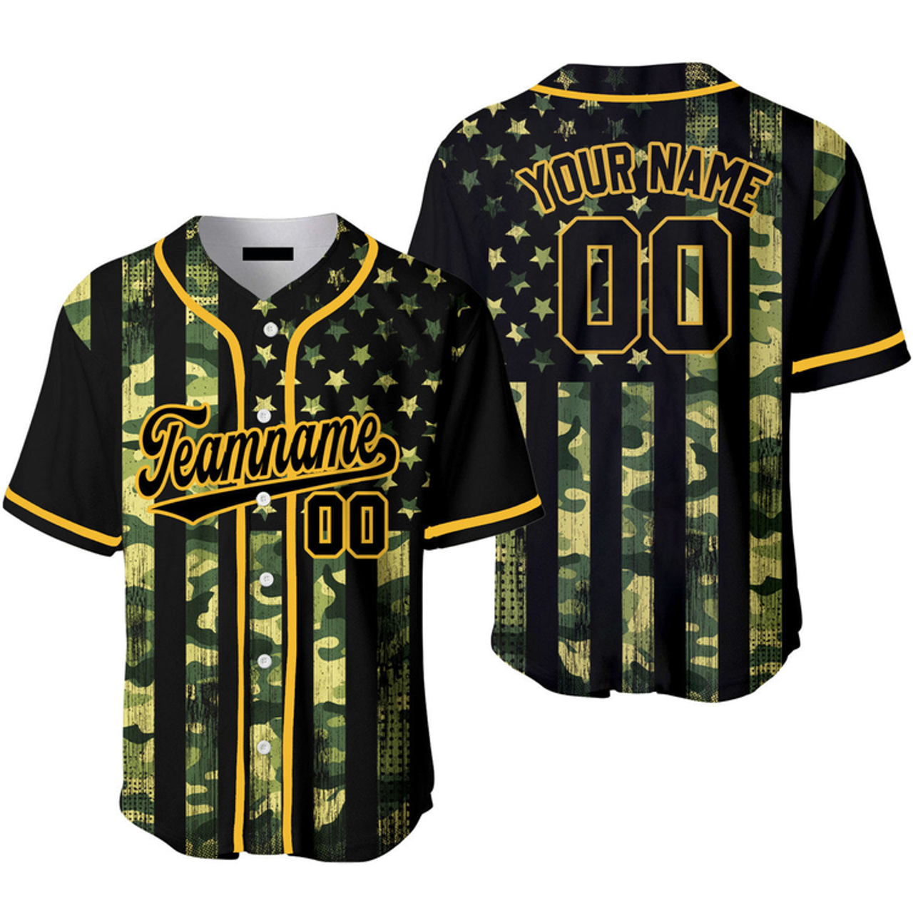 Custom American Flag Camo Style Black Yellow Baseball Jerseys For Men & Women