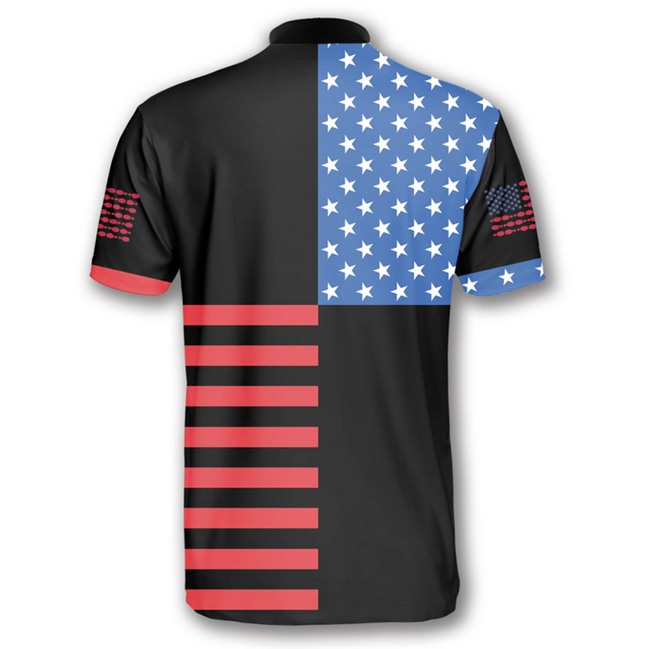 Custom American Flag Crown Emblem Custom Bowling Jerseys for Men, Idea Gift for Bowler, Flag Zipper Polo Shirt