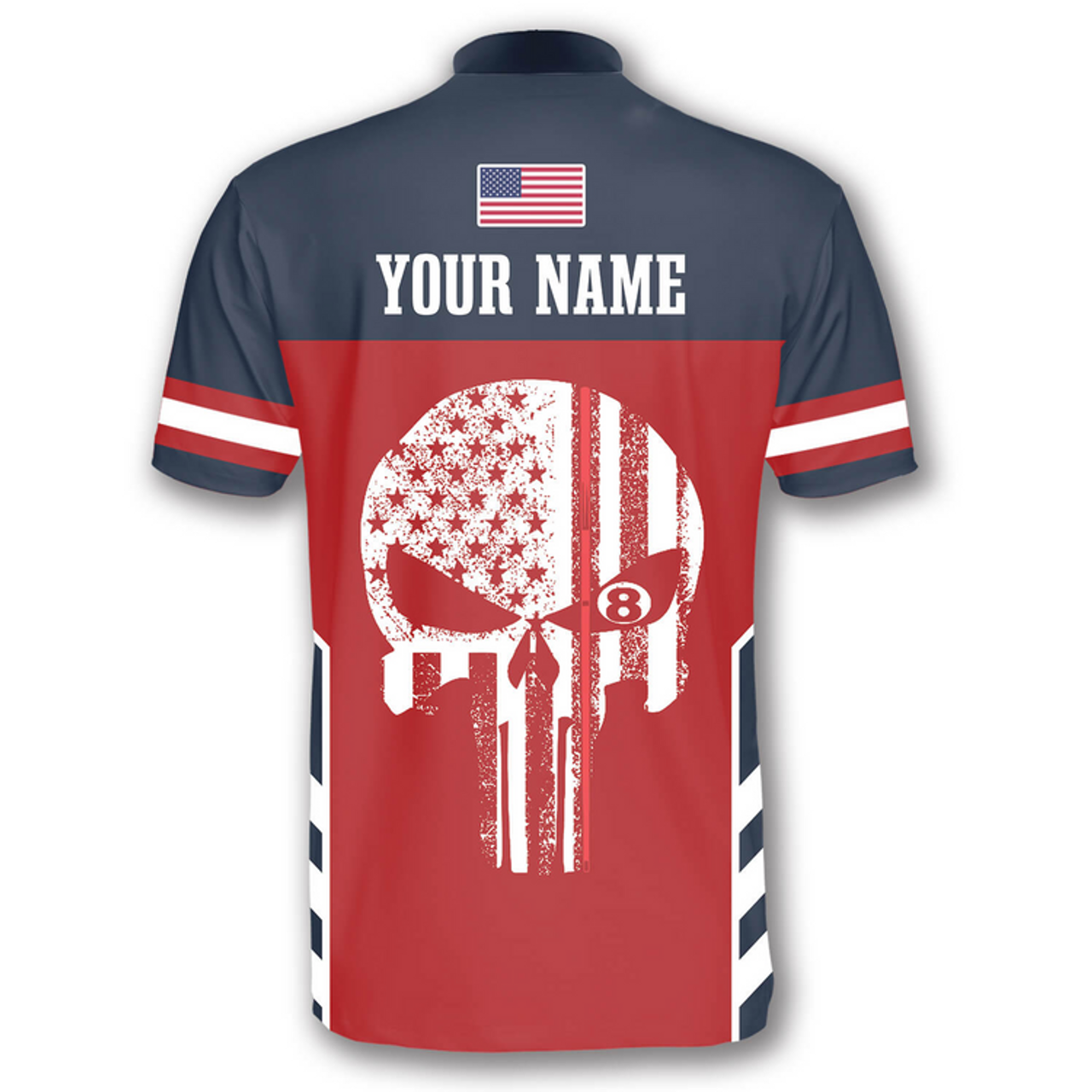 Custom American Flag Skull Red Navy Custom Billiard Jerseys for Men, Idea Gift for Billiard Team, Billiard Player