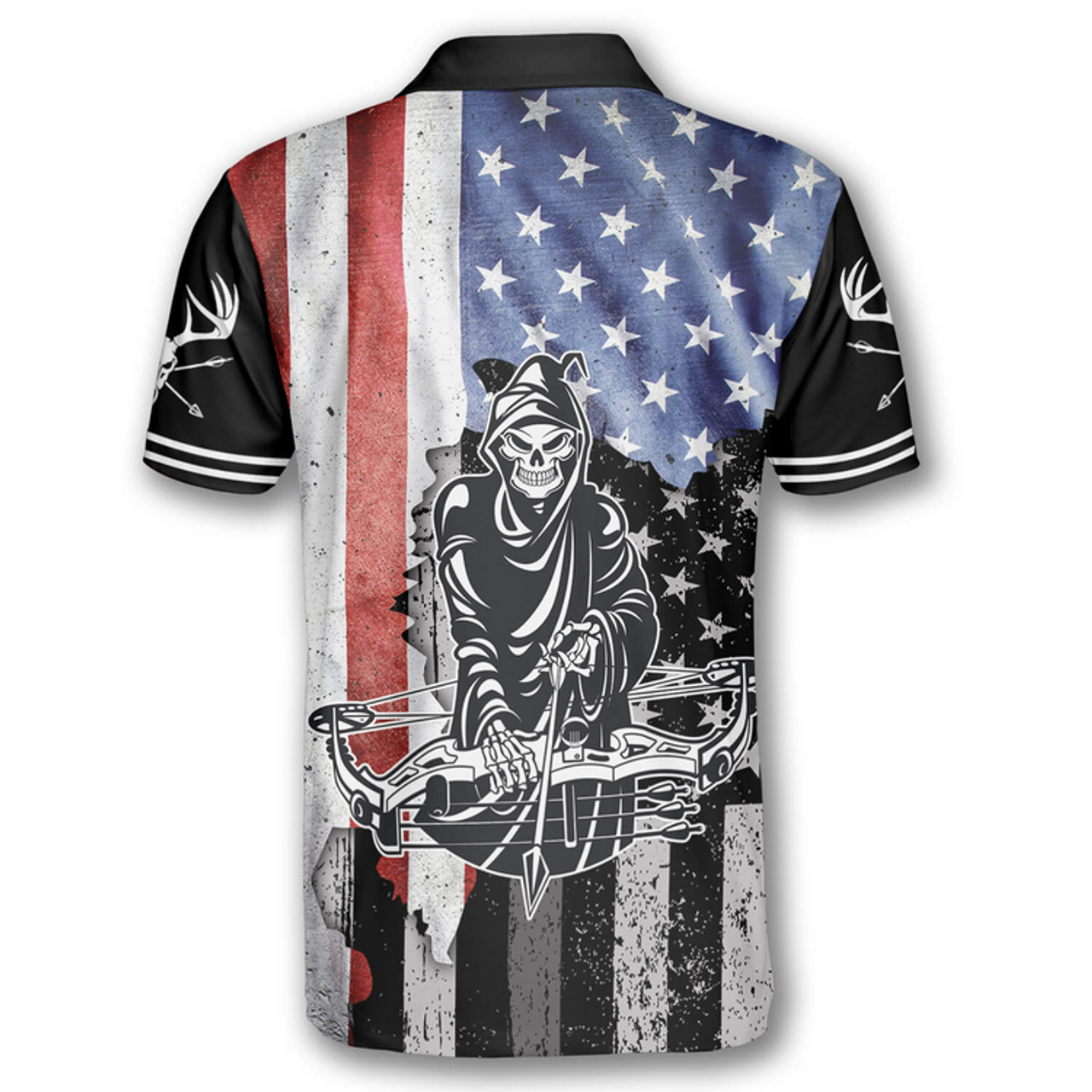 Custom Archery Grim Reaper American Flag Custom Archery Shirts For Men, Flag Shirt, Archery Uniform Shirt