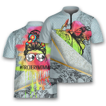 Custom Archery Momma Life Messy Bun Hair Glasses Shooter Archery Jersey Zipper Shirt