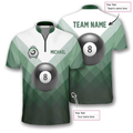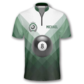 Custom Ball 8 Green Sports Style Custom Billiard Jerseys for Men, Zipper Polo Shirt Billiard Jersey Shirt
