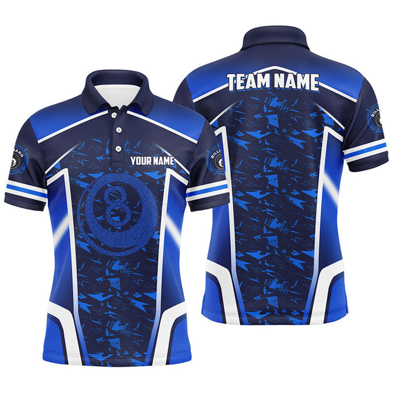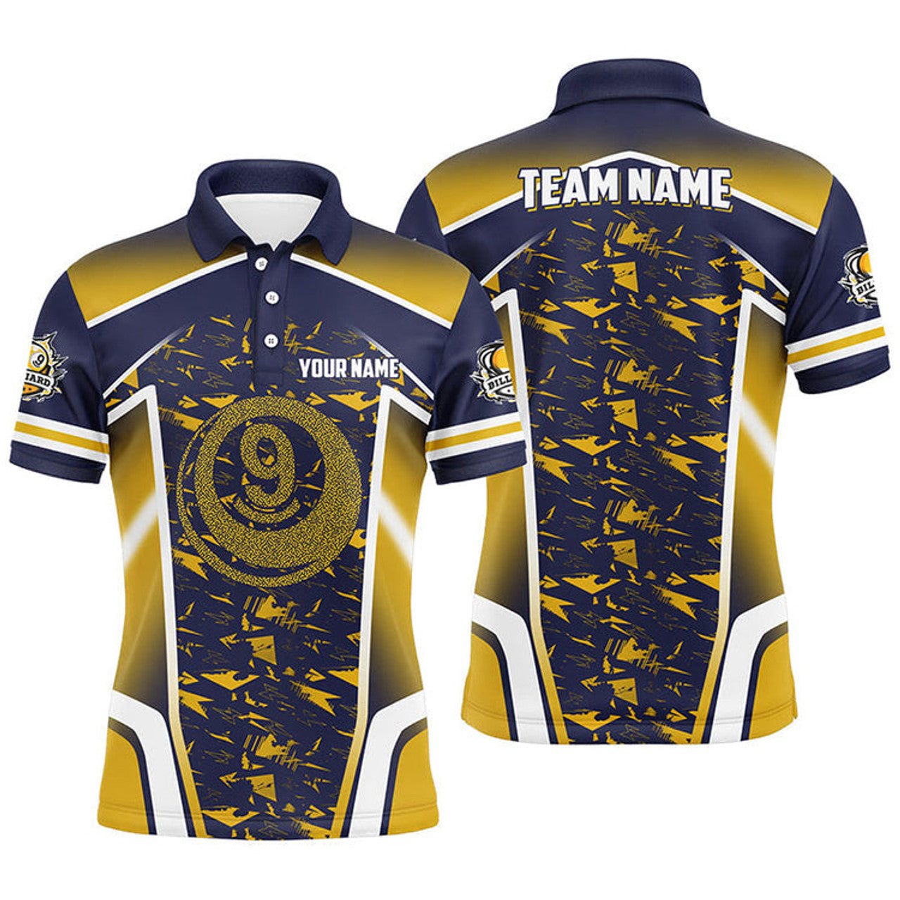 Custom Billiard Multicolor 8 Ball Glitter and Grunge Pool Abstract Customized Name, Team Name 3D Polo Shirt