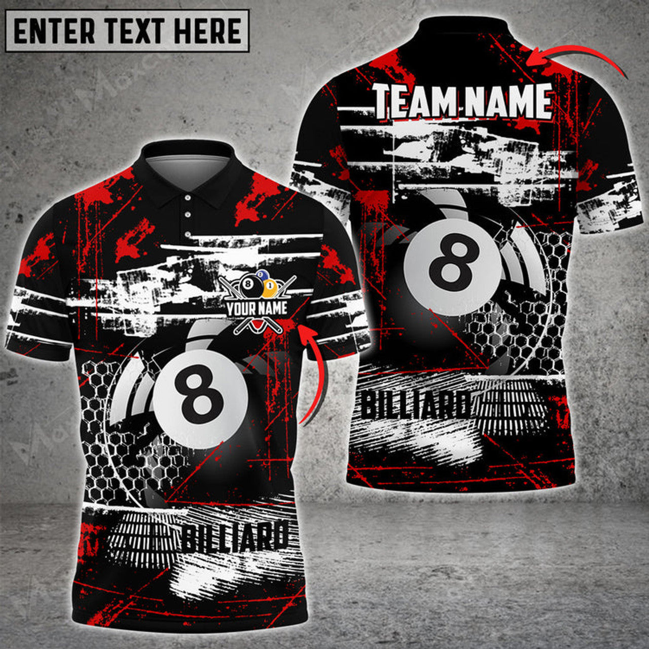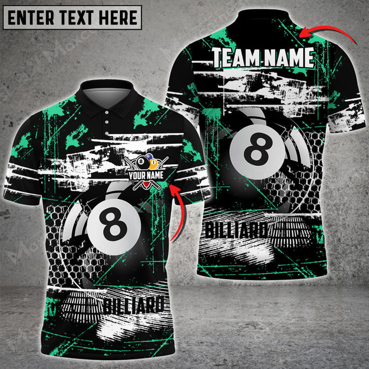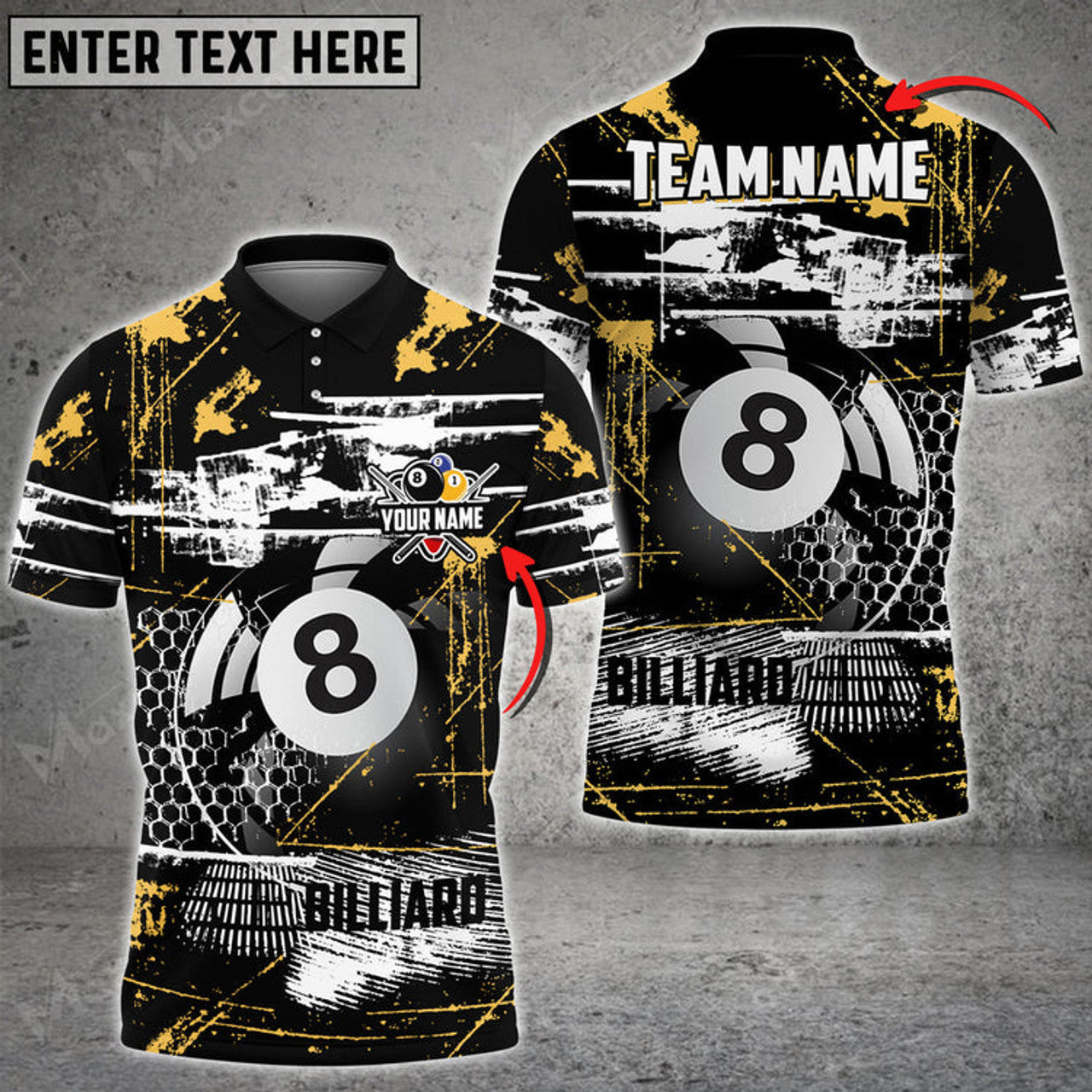 Custom Billiards Ball 8 Color Art Texture Personalized Name, Team Name 3D Polo Shirt Multicolor Options