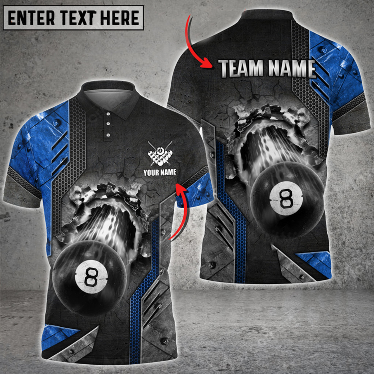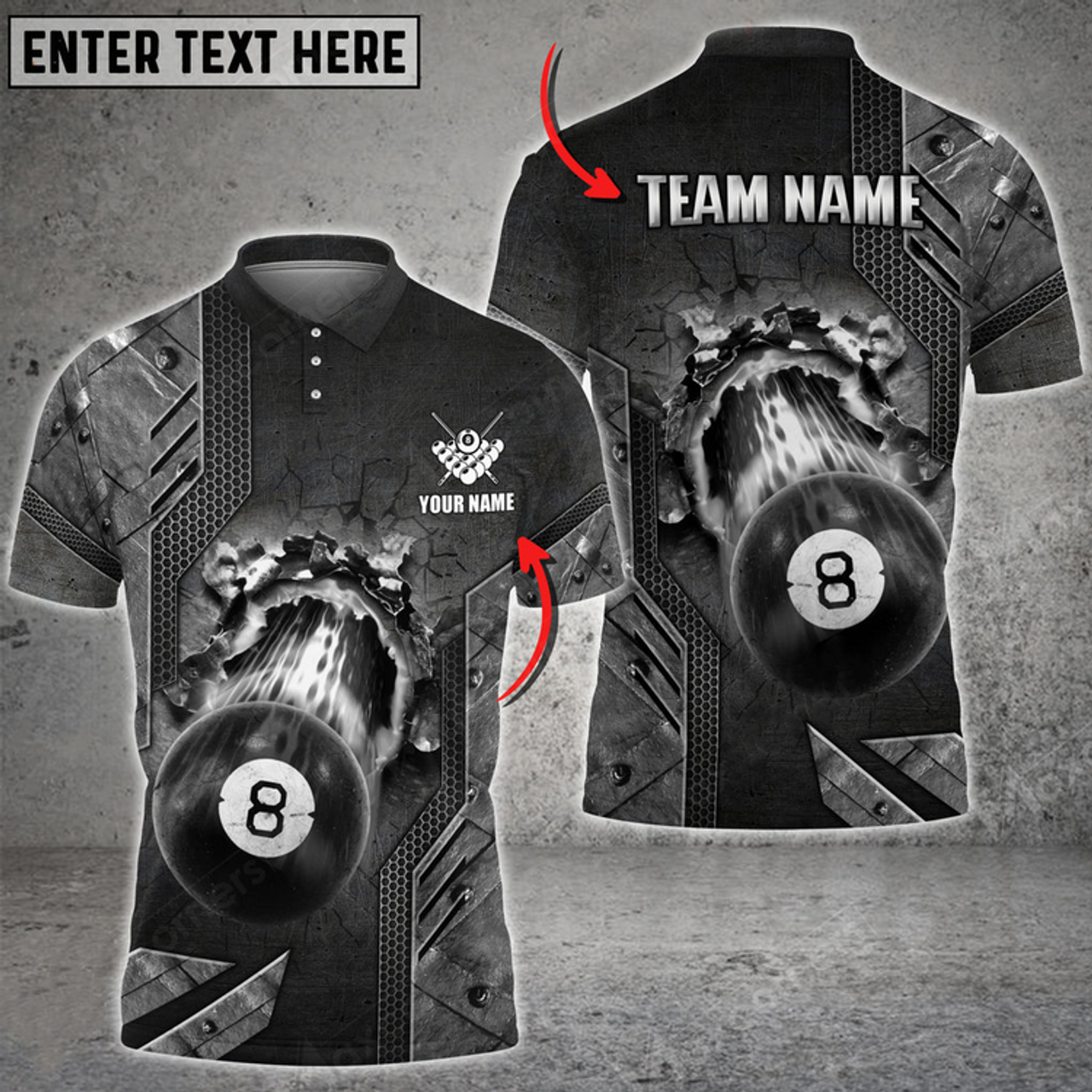 Custom Billiards Ball 8 Crack Metalic Color Personalized Name 3D Polo Shirt Multi Color Options, Gift for Pooler