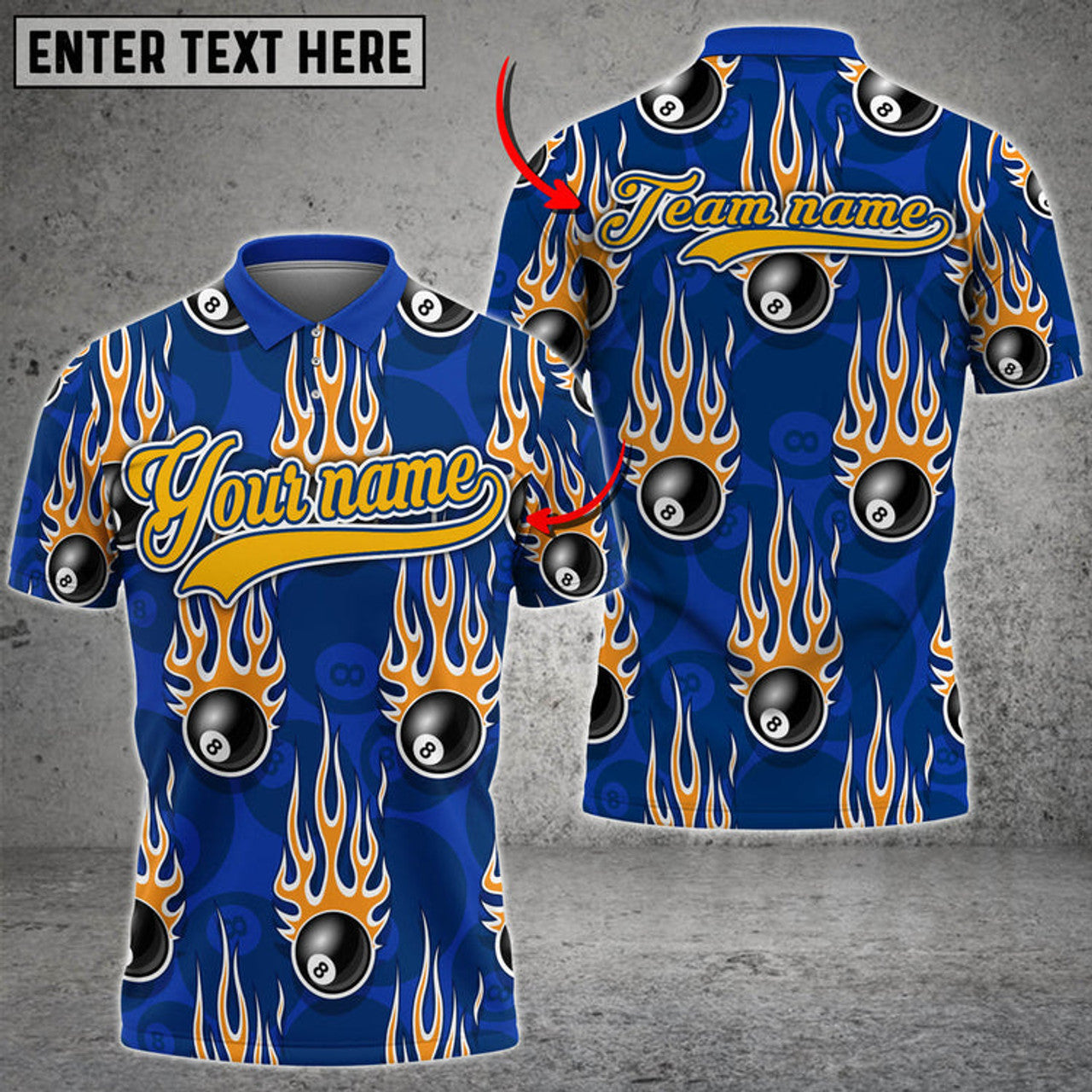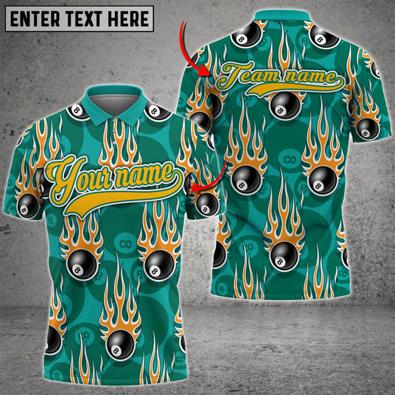 Custom Billiards Ball 8 Shower Multicolor Options Personalized Name 3D Polo Shirt, Billiard Fire Shirt