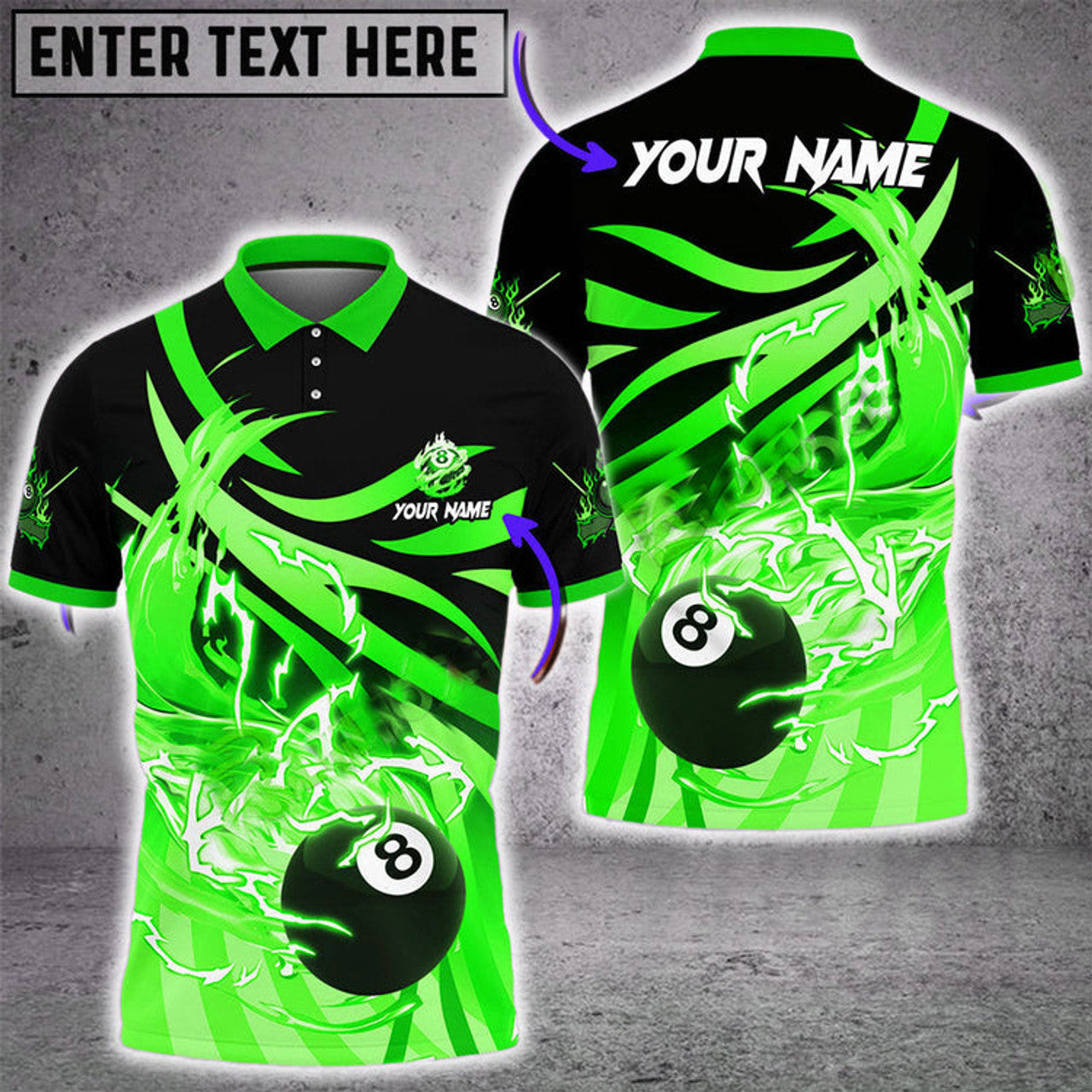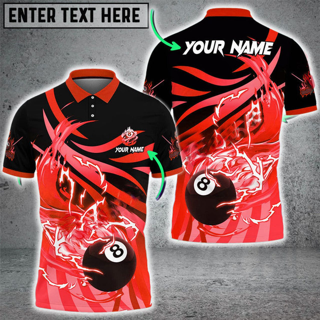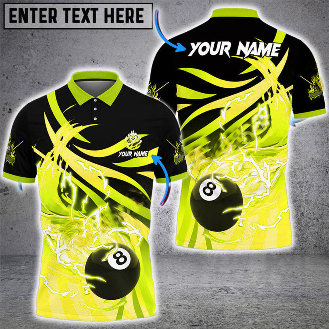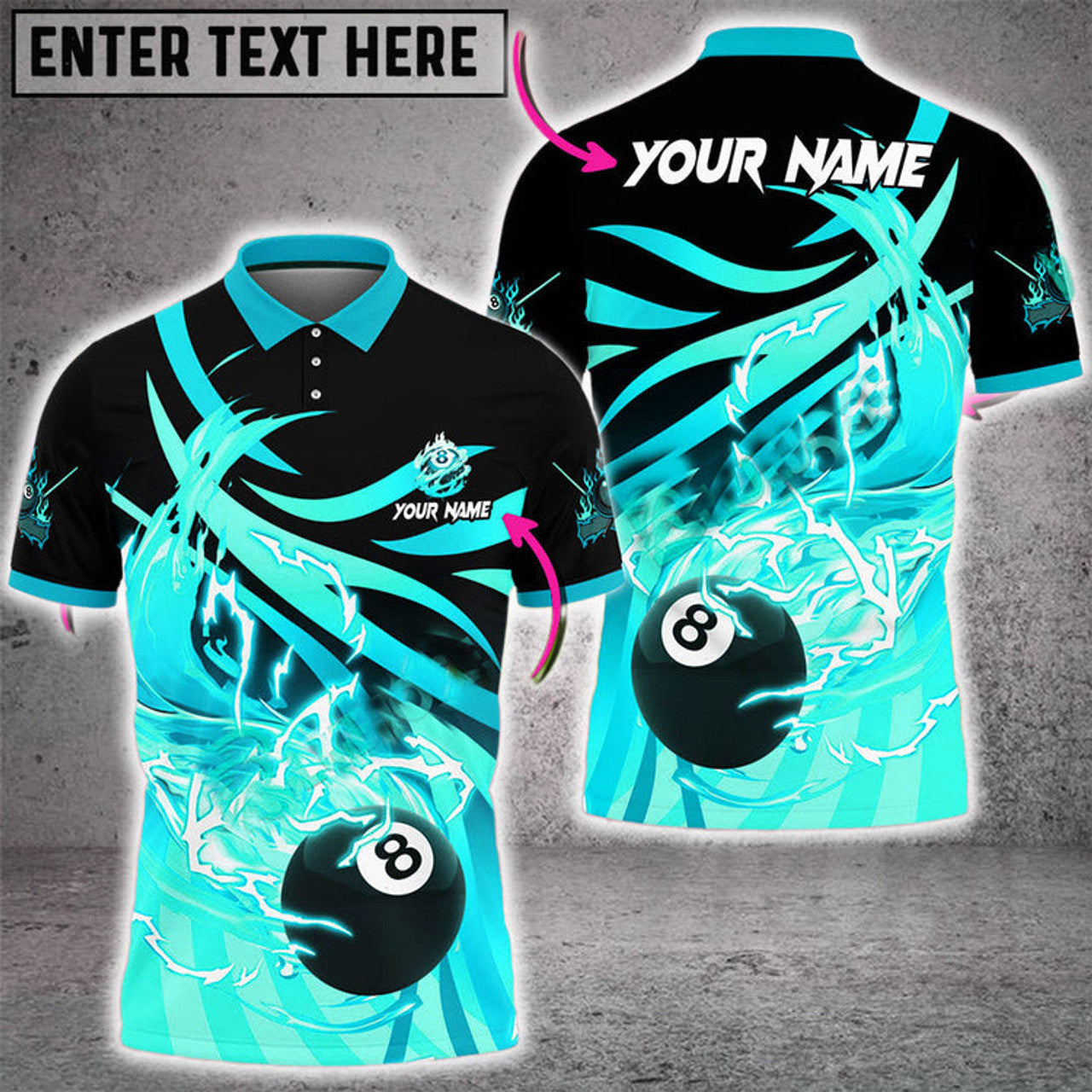 Custom Billiards Ball 8 Thunder Flame Strike Personalized Name, Team Name Unisex Shirt