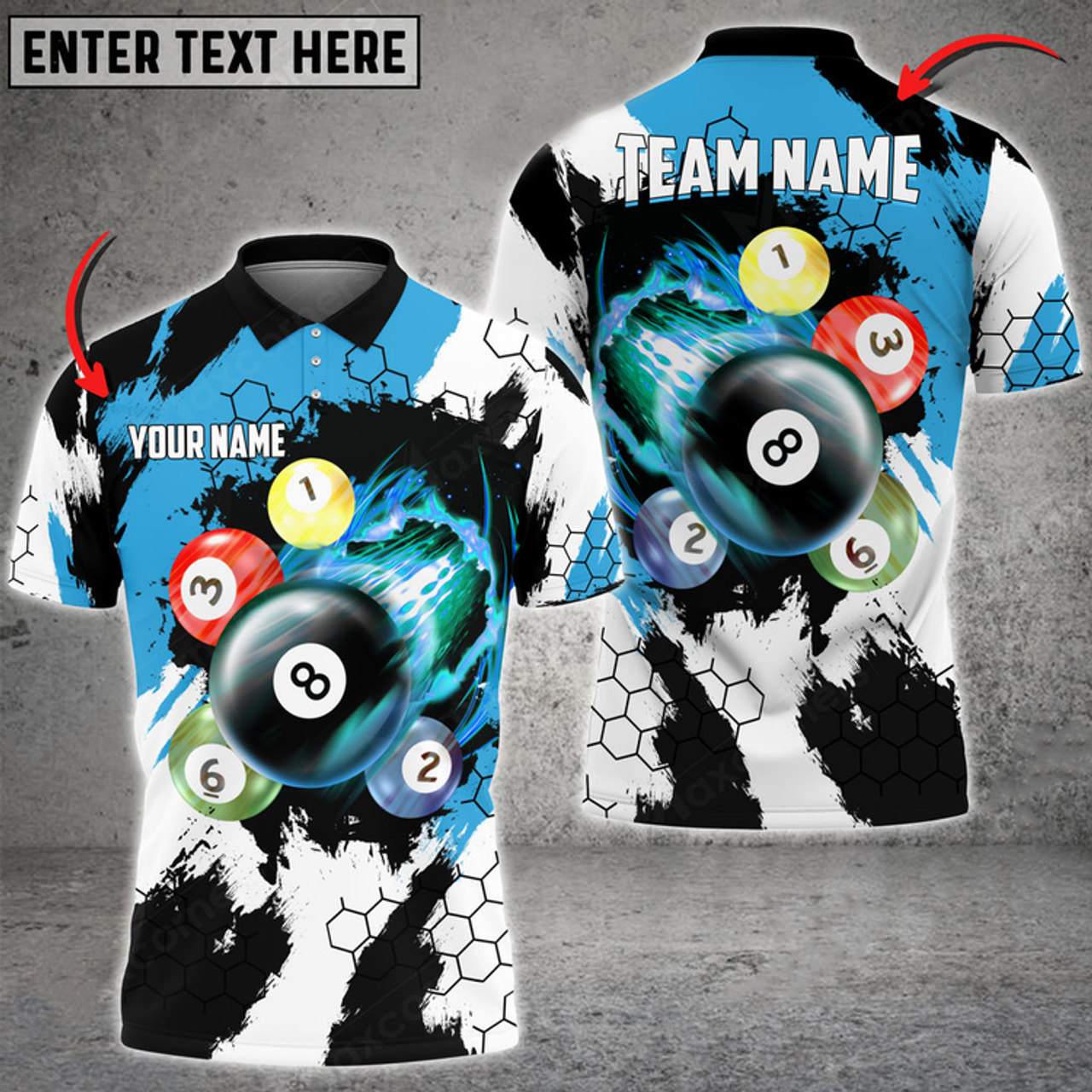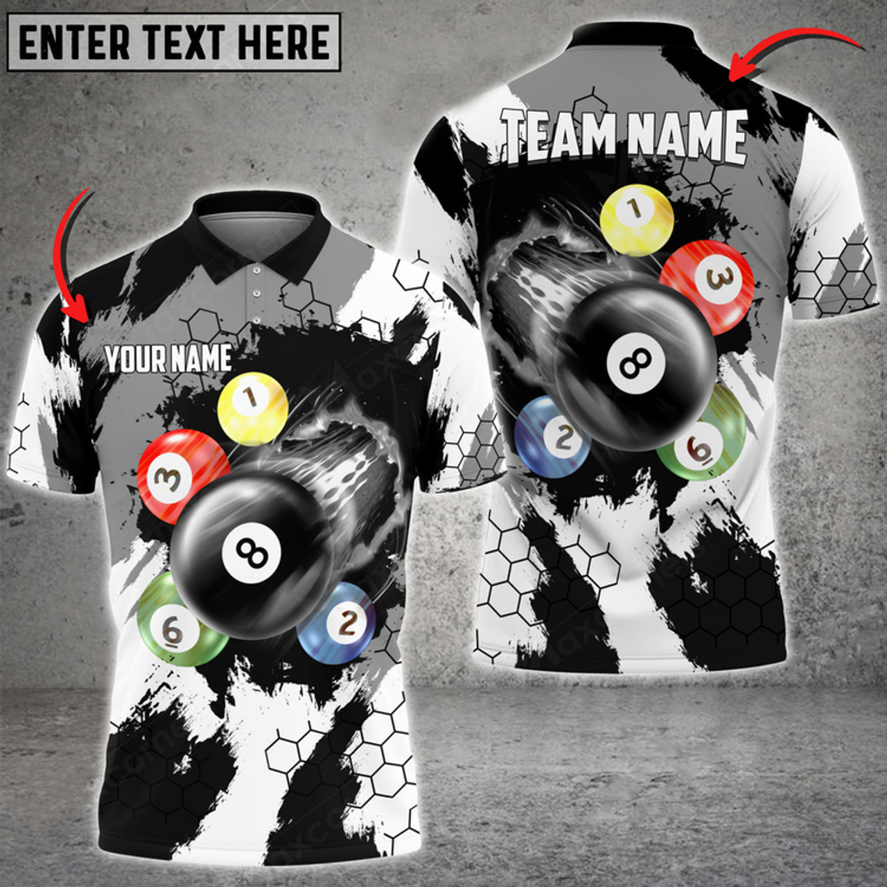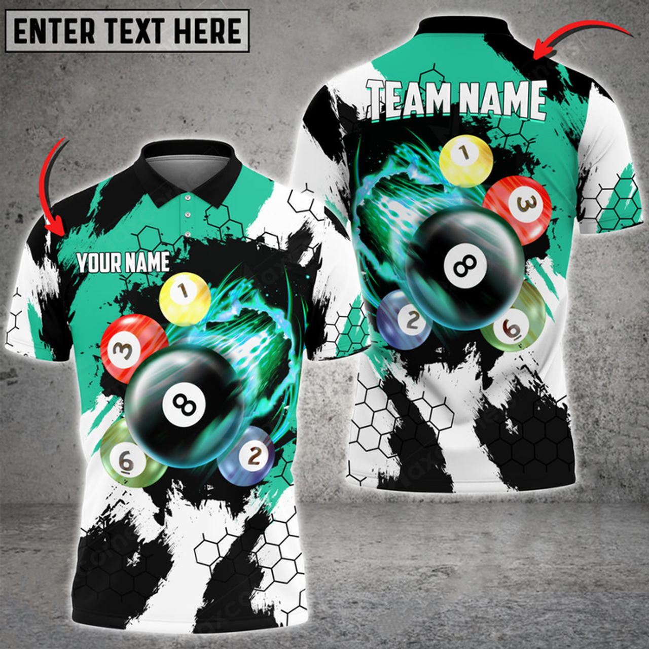 Custom Billiards Breaking Hexagon Multilcolor Personalized Name, Team Name Unisex 3D Polo Shirt