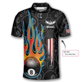 Custom Billiards Pool Flame 8 Ball Usa Flag Custom Billiard Shirts For Men