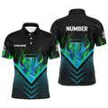 Custom Black and green fire Mens Disc golf polo shirts custom flame disc golf basket jerseys, disc golf shirt