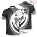 Custom Black Grey Silhouette Custom Billiard Jerseys for Men, Team Billiard Shirt, Uniform Billiard Team