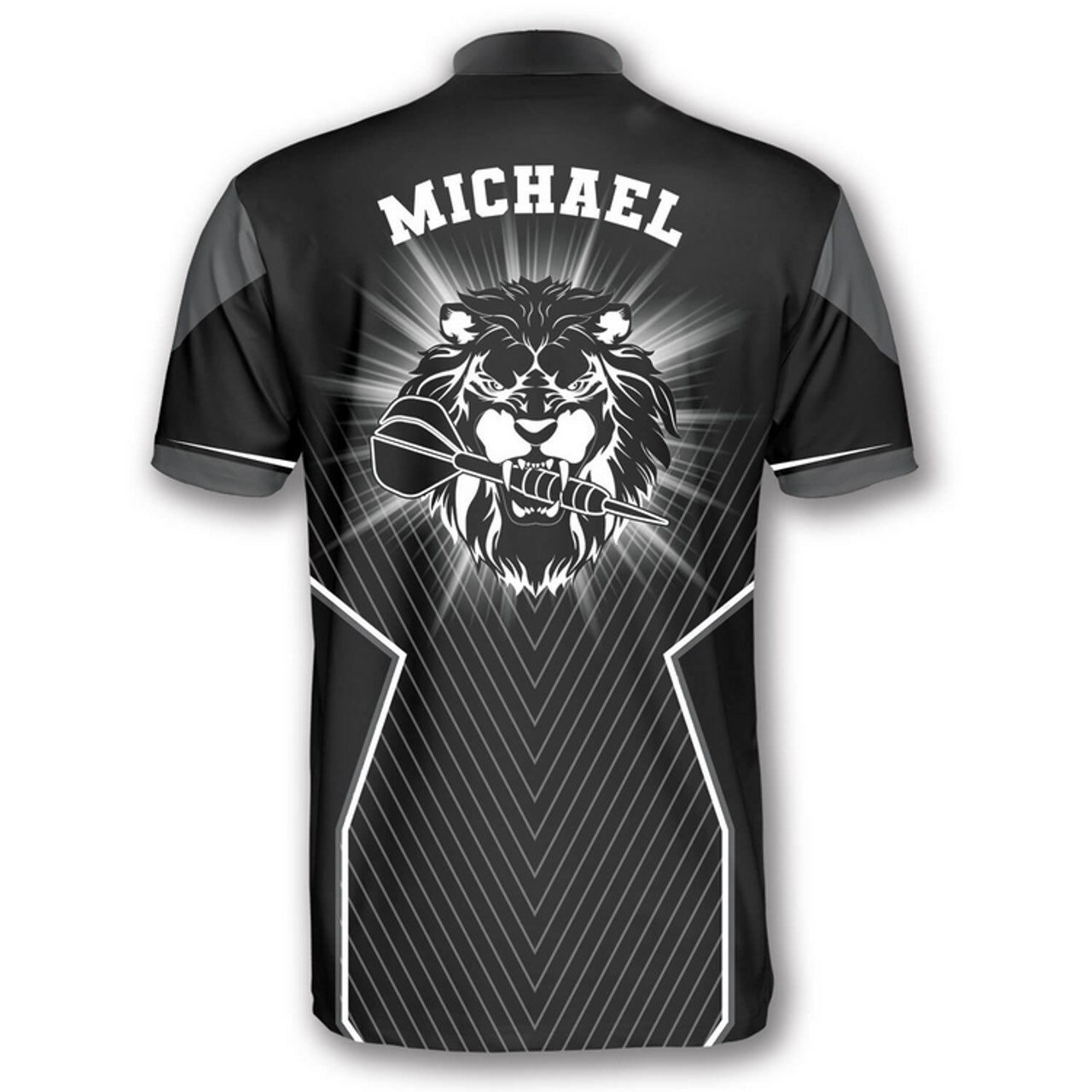 Custom Black Lion Head Custom Darts Jerseys for Men, Zipper Polo Shirt Top Dart Shirt