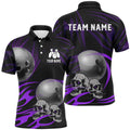 Custom Black Men Bowling polo, quarter zip shirt Custom Skull bowling ball Men's Team League Jersey | Purple