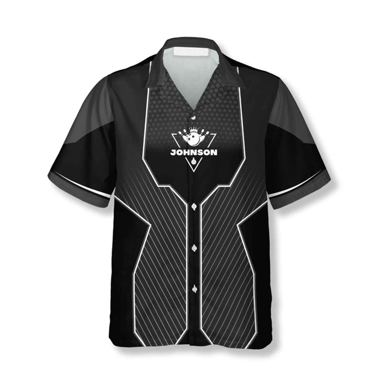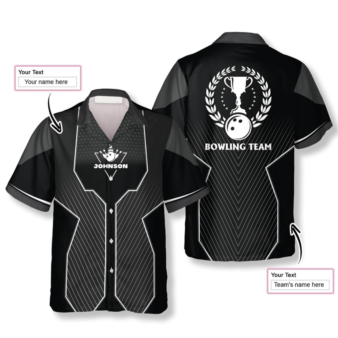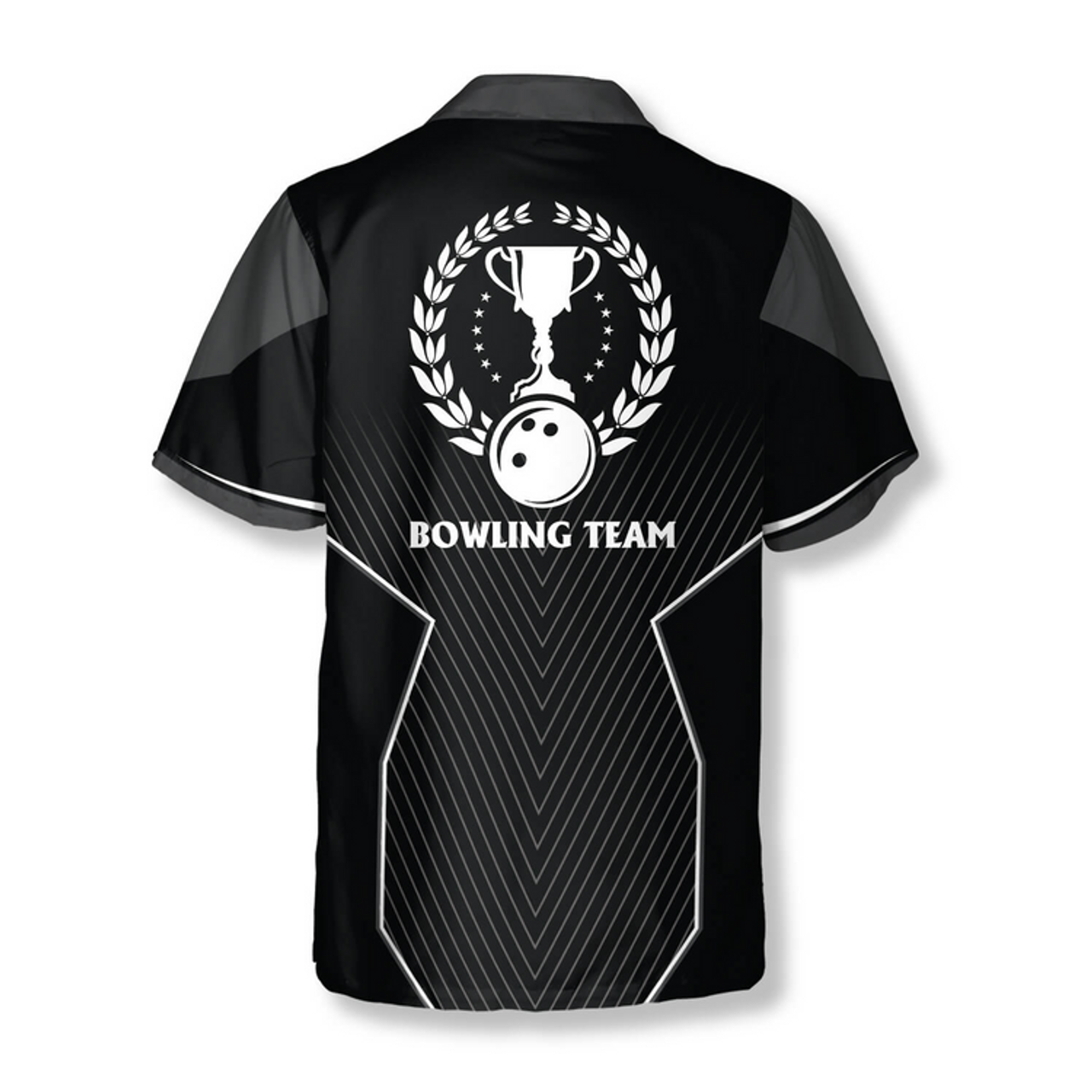 Custom Black Sports Style Trophy Emblem Custom Bowling Hawaiian Shirt, Uniform Shirt for Team Bowling