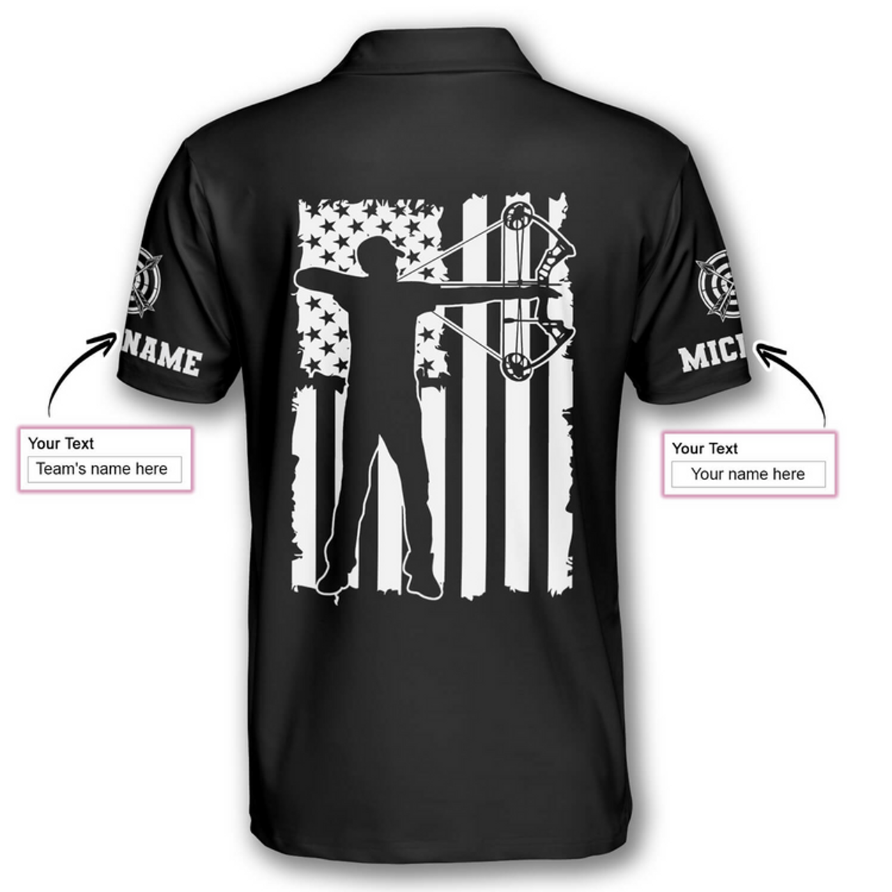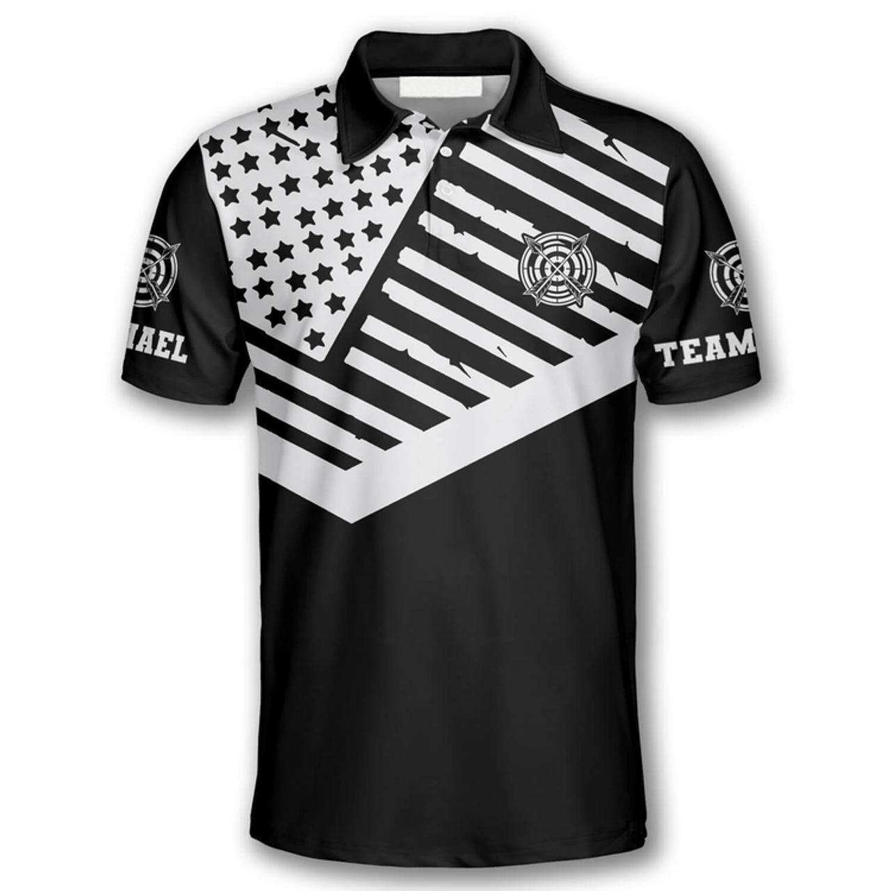 Custom Black White American Flag Custom Archery Polo Shirts for Men, Flag American Archery Shirt
