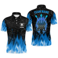 Custom Blue Flame Skull Mens Darts Polo Shirt Custom Scary Darts Shirt For Men Dart Jerseys