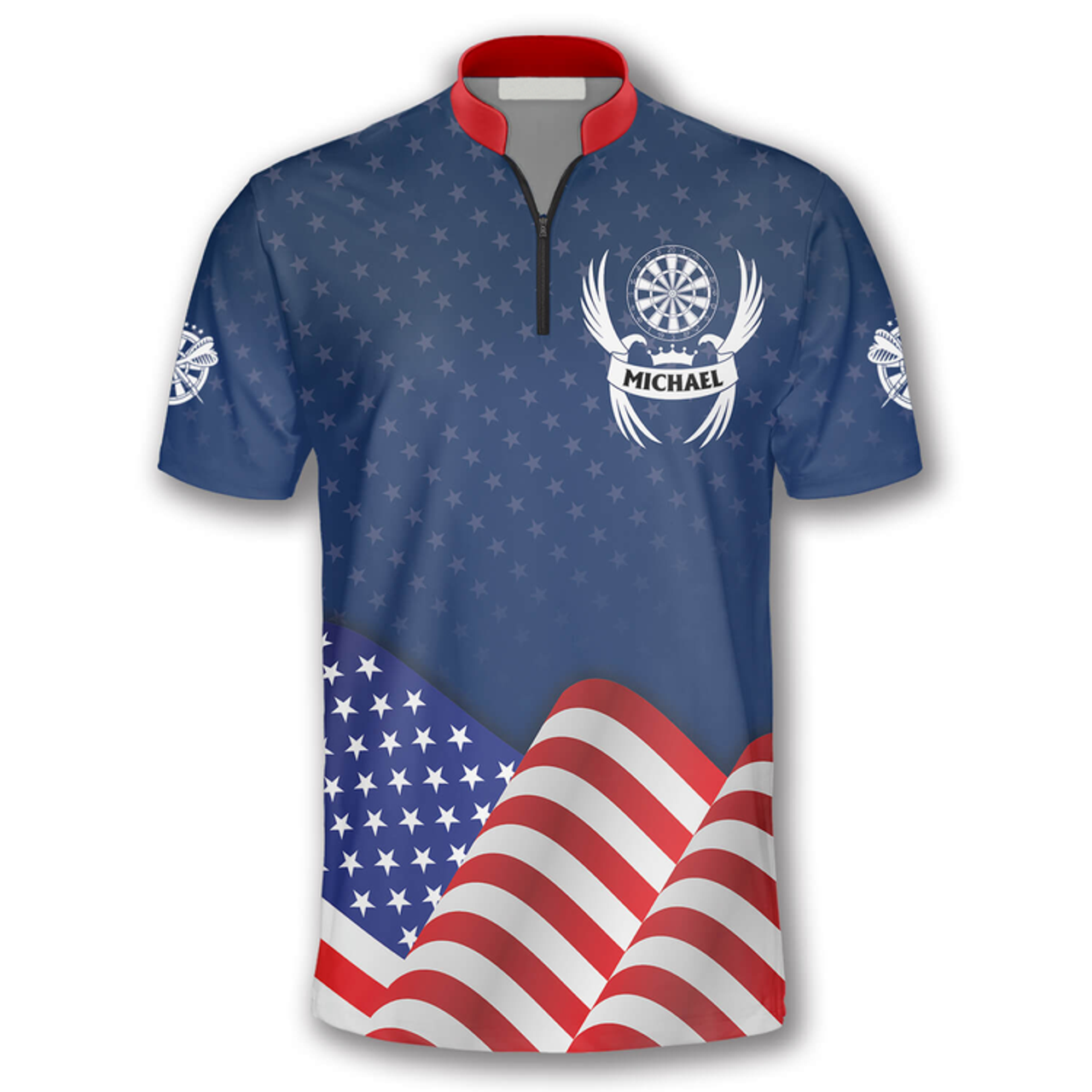 Custom Blue Waving Flag Custom Darts Jerseys for Men, Uniform Shirt for Dart Team, Dart player