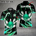 Custom Bowling And Pins Breath Of Thunder Multicolor Option Customized Name 3D Polo Shirt, Gift for Bowler