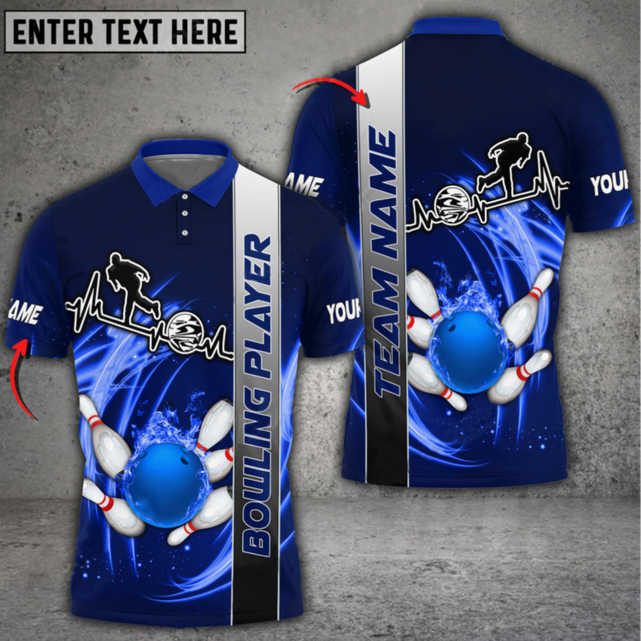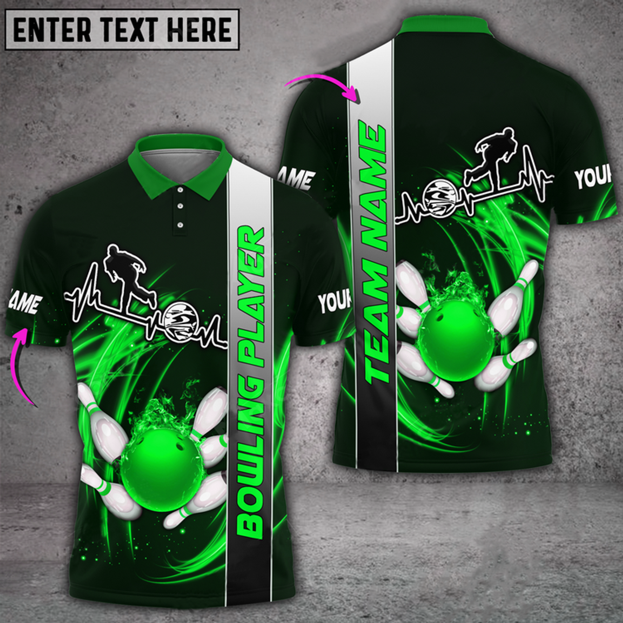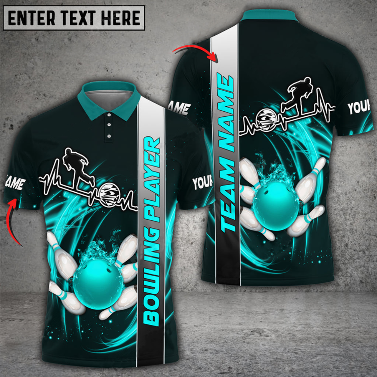 Custom Bowling And Pins Heart Fire Multicolor Option Customized Name 3D Shirt, Idea Gift For Bowler
