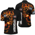 Custom Bowling And Pins Mutilcolor Flame Skull Customized Name, Team Name 3D Zipper Polo Shirt For Men
