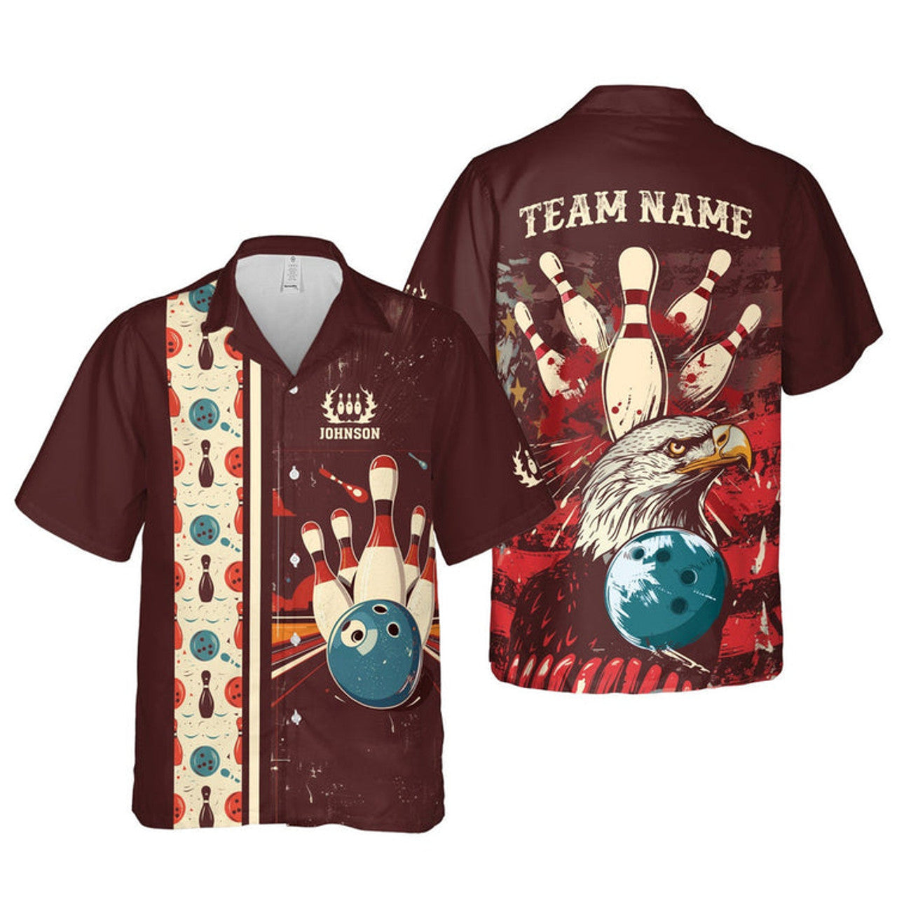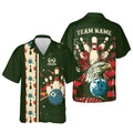 Custom Bowling And Pins Retro Multi Color Pattern Customized Name, Team Name 3D Hawaiian Shirt
