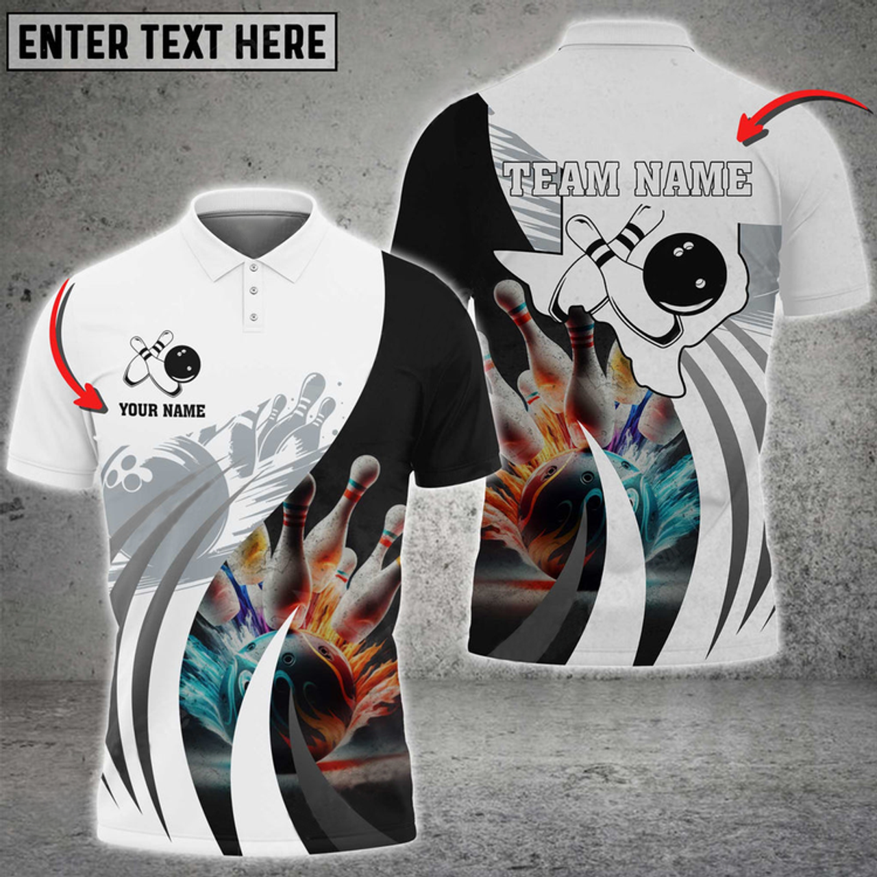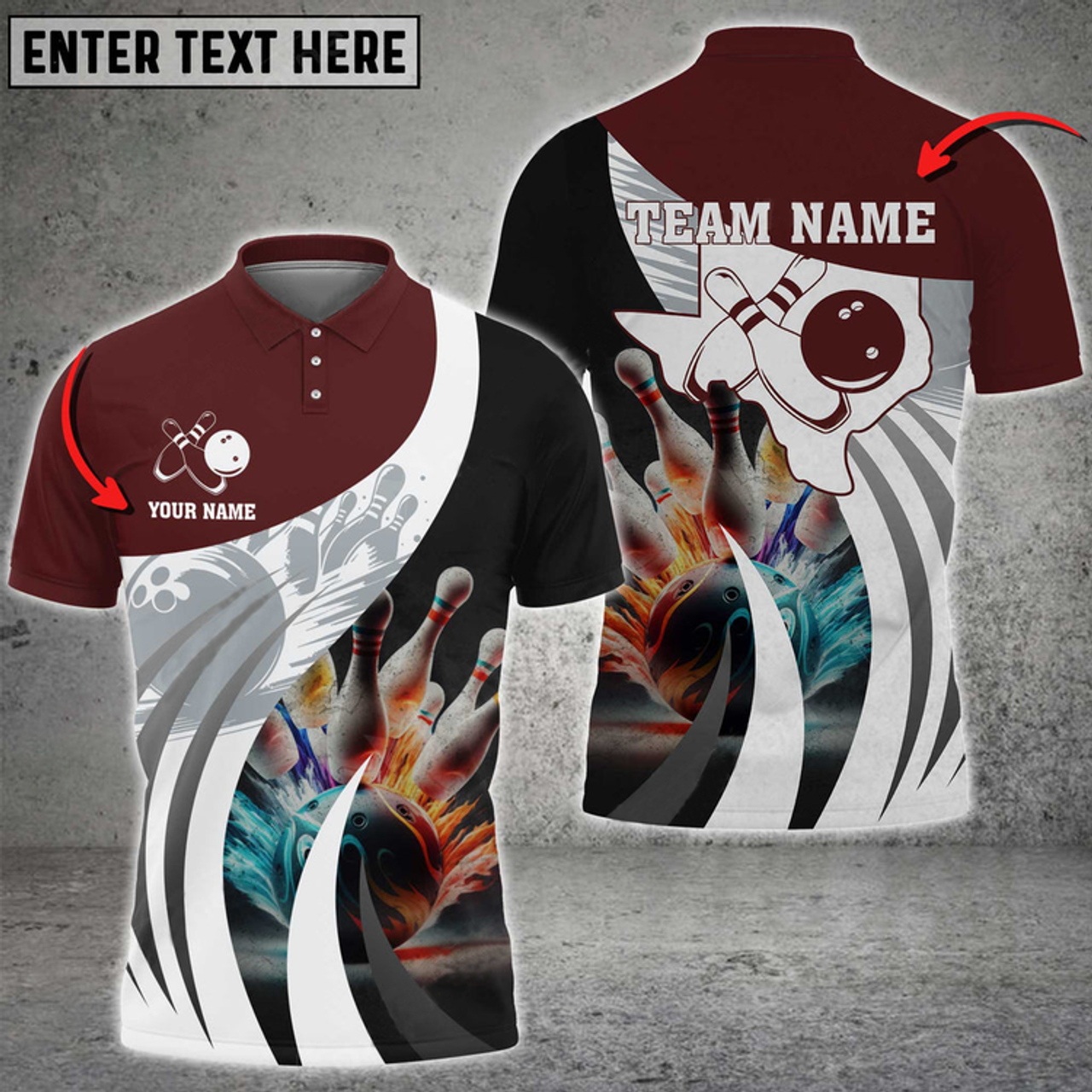 Custom Bowling Ball And Pins Texas Map Multicolor Option Customized Name 3D Polo Shirt, Idea Gift for Bowler