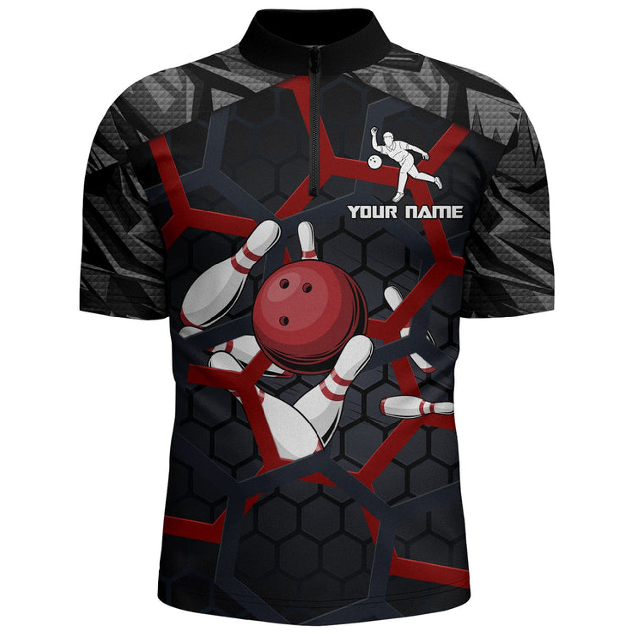Custom Bowling Quarter-Zip Shirt For Men Camo Bowling Jersey 1/4 Zip Bowling Team League Shirts