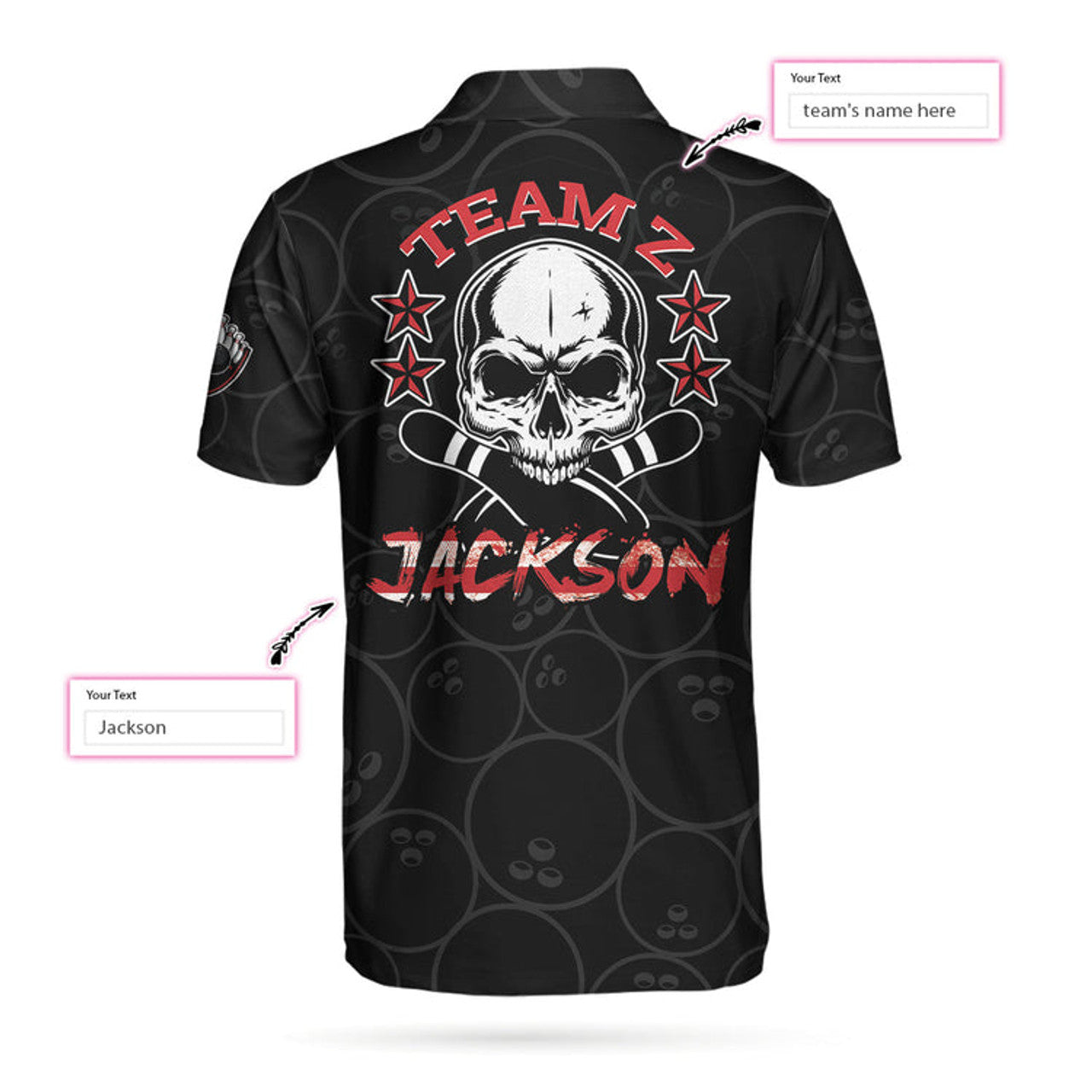 Custom Bowling Team Skull Short Sleeve Custom Polo Shirt, Personalized Skull American Flag Polo Shirt, Bowling Shirt For Men