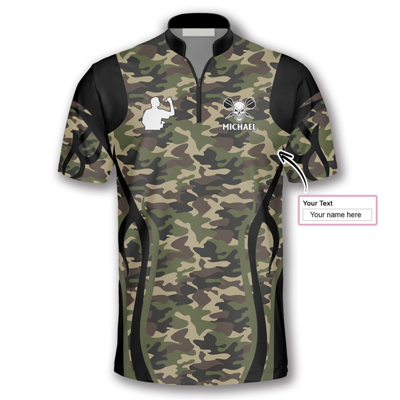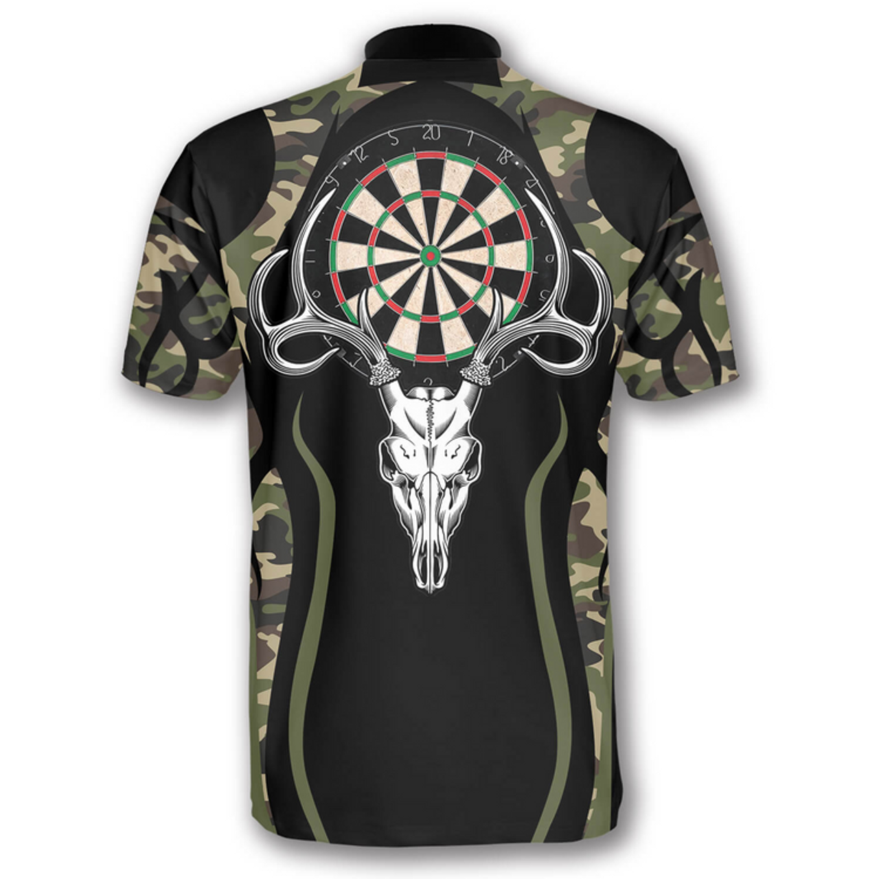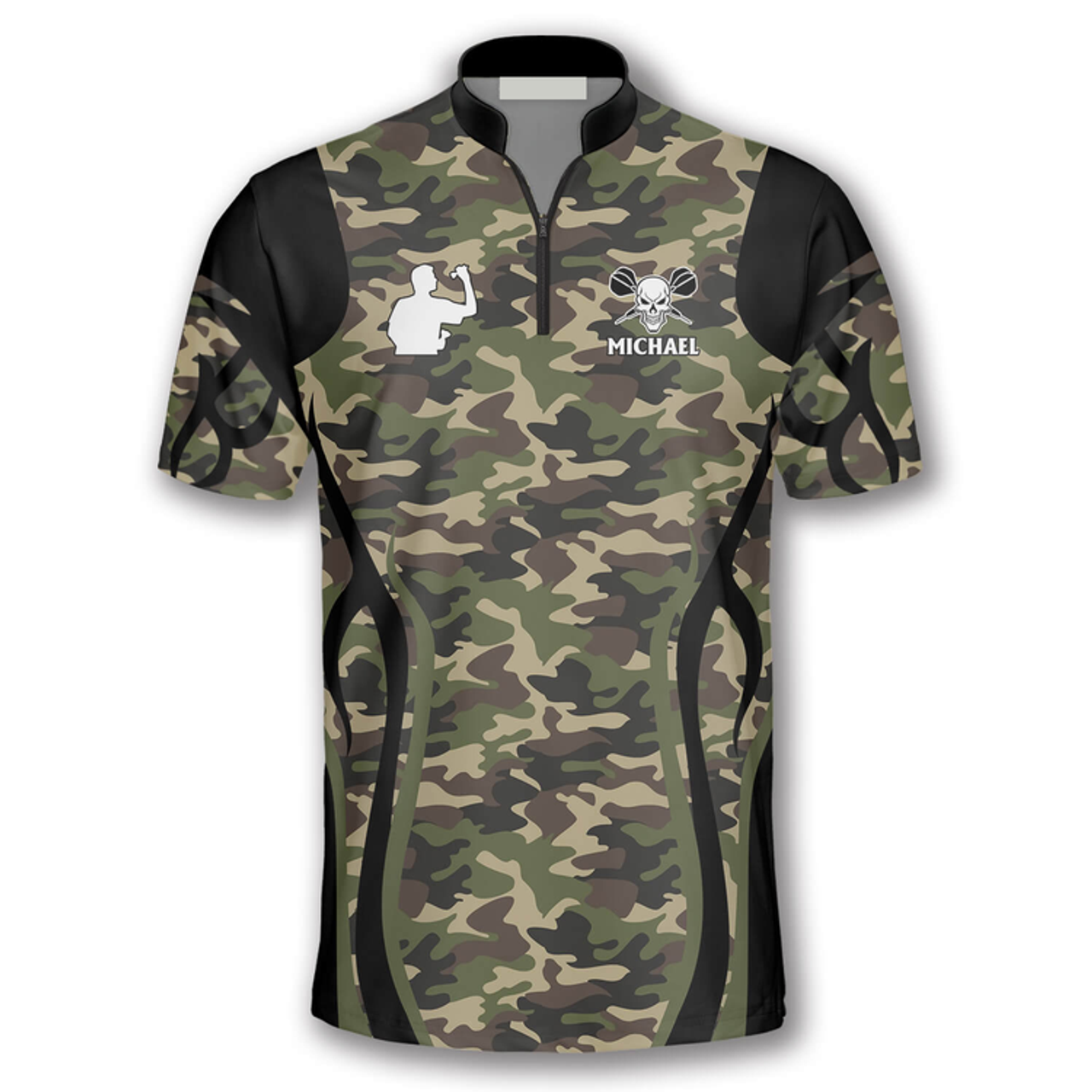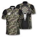 Custom Bull Skull Camo Custom Darts Jerseys for Men, Skull Dartboard Zipper Polo Shirt