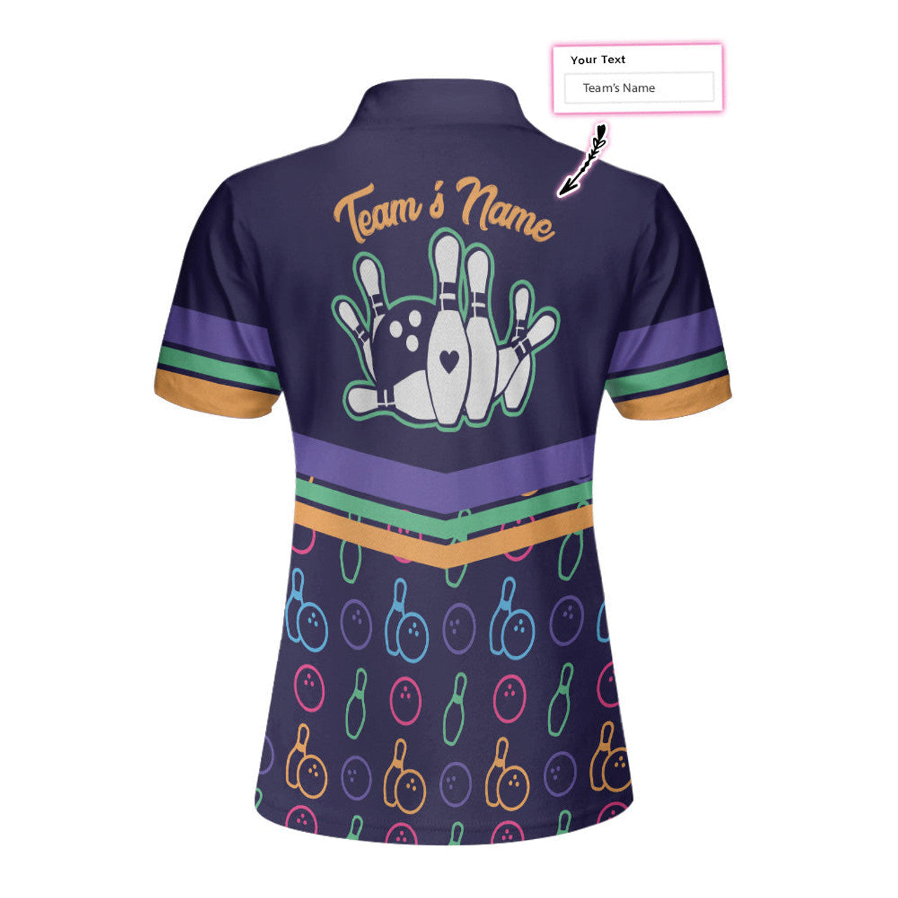 Custom Colorful Bowling Pattern Custom Short Sleeve Woman Polo Shirt, Personalized Bowling Themed Shirt For Ladies, Cool Gift For Bowlers