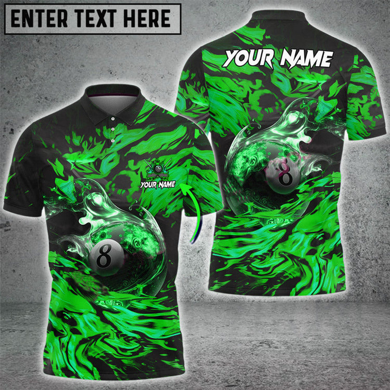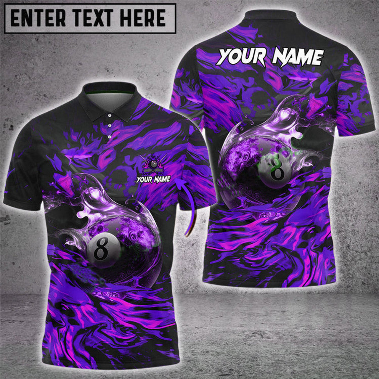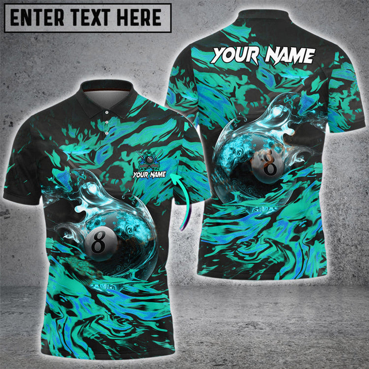 Custom Billiards Ball 8 Flame Ocean, Personalized Name, Team Name Unisex Polo Shirt