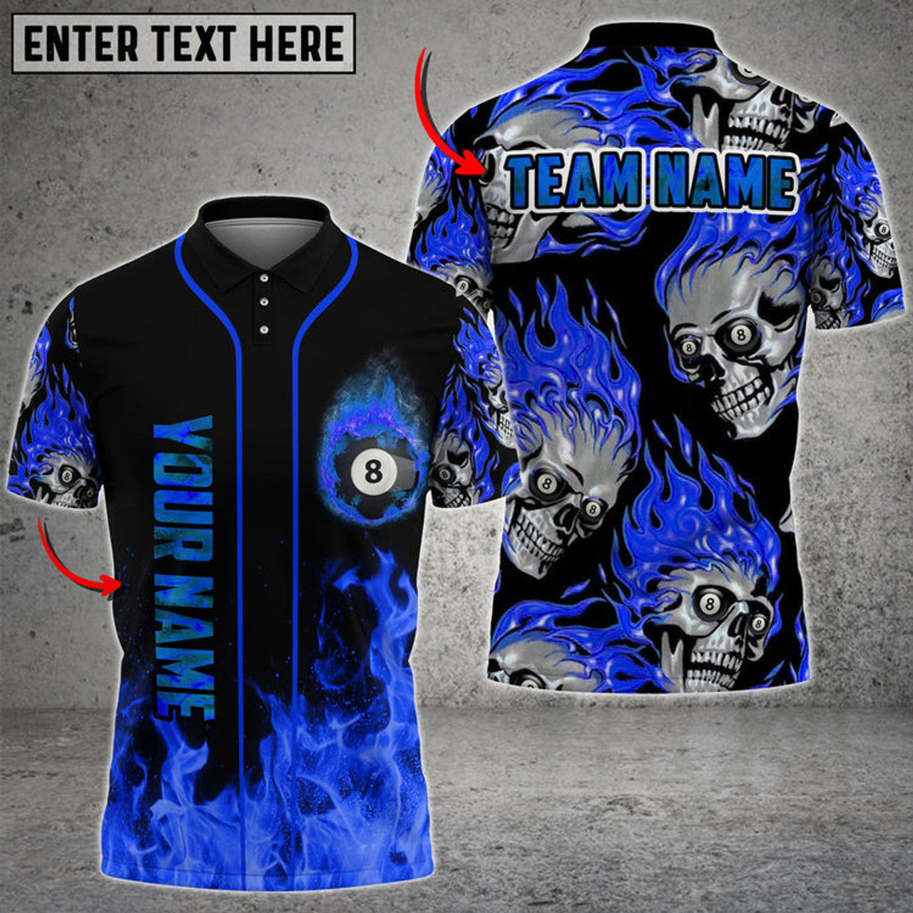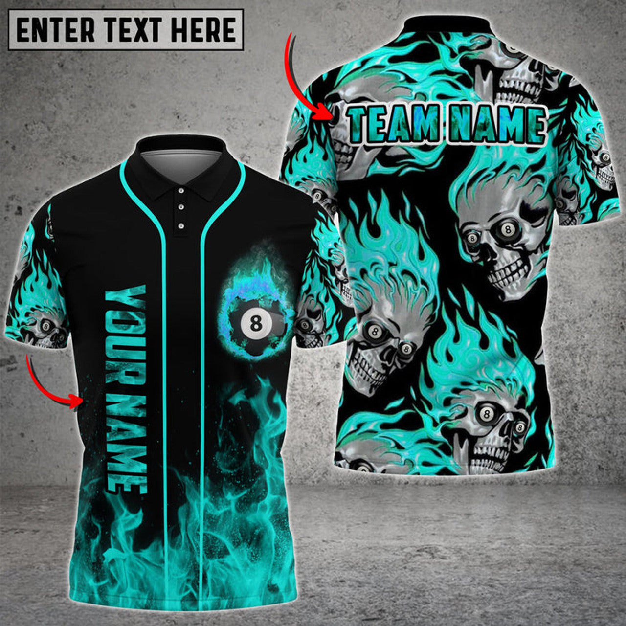 Custom Billiards Ball 8 Skull Fire Multicolor Options Personalized Name 3D Polo Shirt