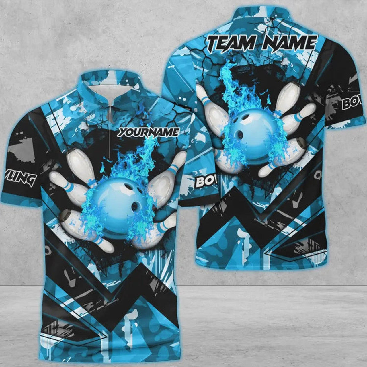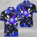 Custom Bowling And Pins Abstract Grunge Texture v3 Multicolor Option Customized Name Zipper Polo Shirt, Gift fot Bowler