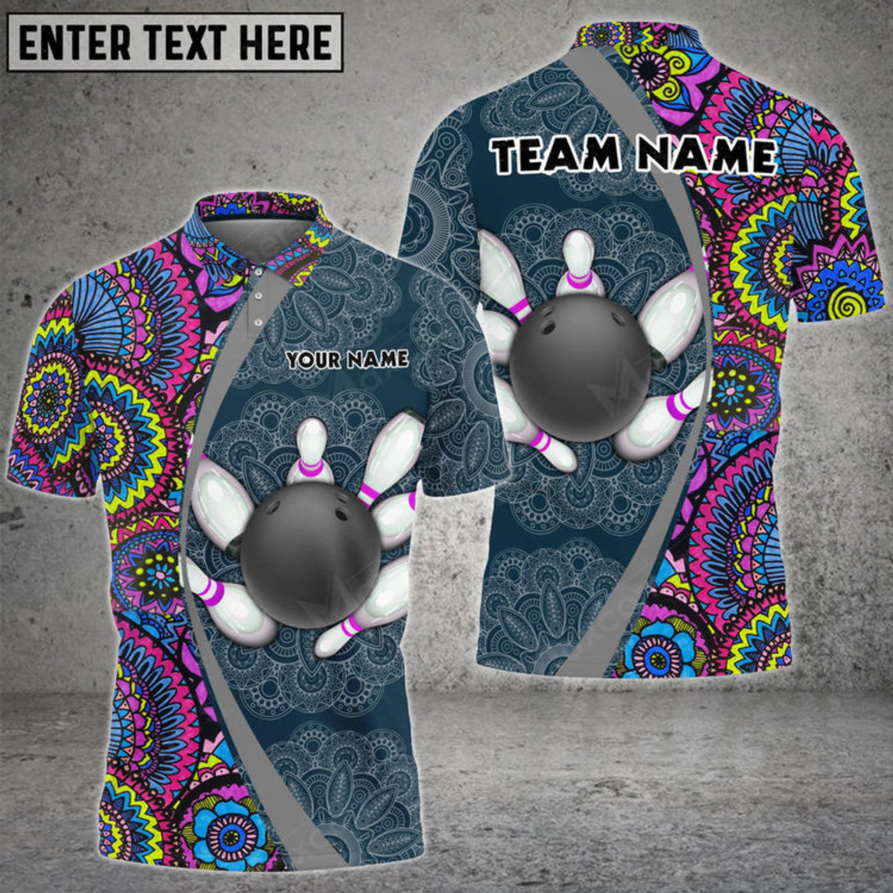 Custom Bowling And Pins Mandala Pattern Multicolor Option Customized Name 3D Polo Shirt