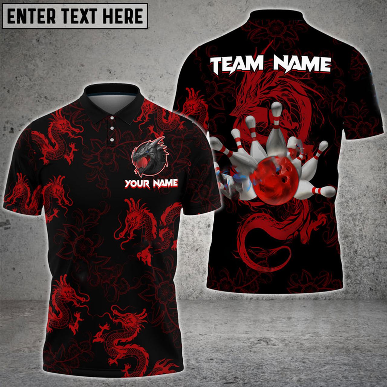 Custom Bowling And Pins Multicolor Mythical Dragon Customized Name 3D Polo Shirt