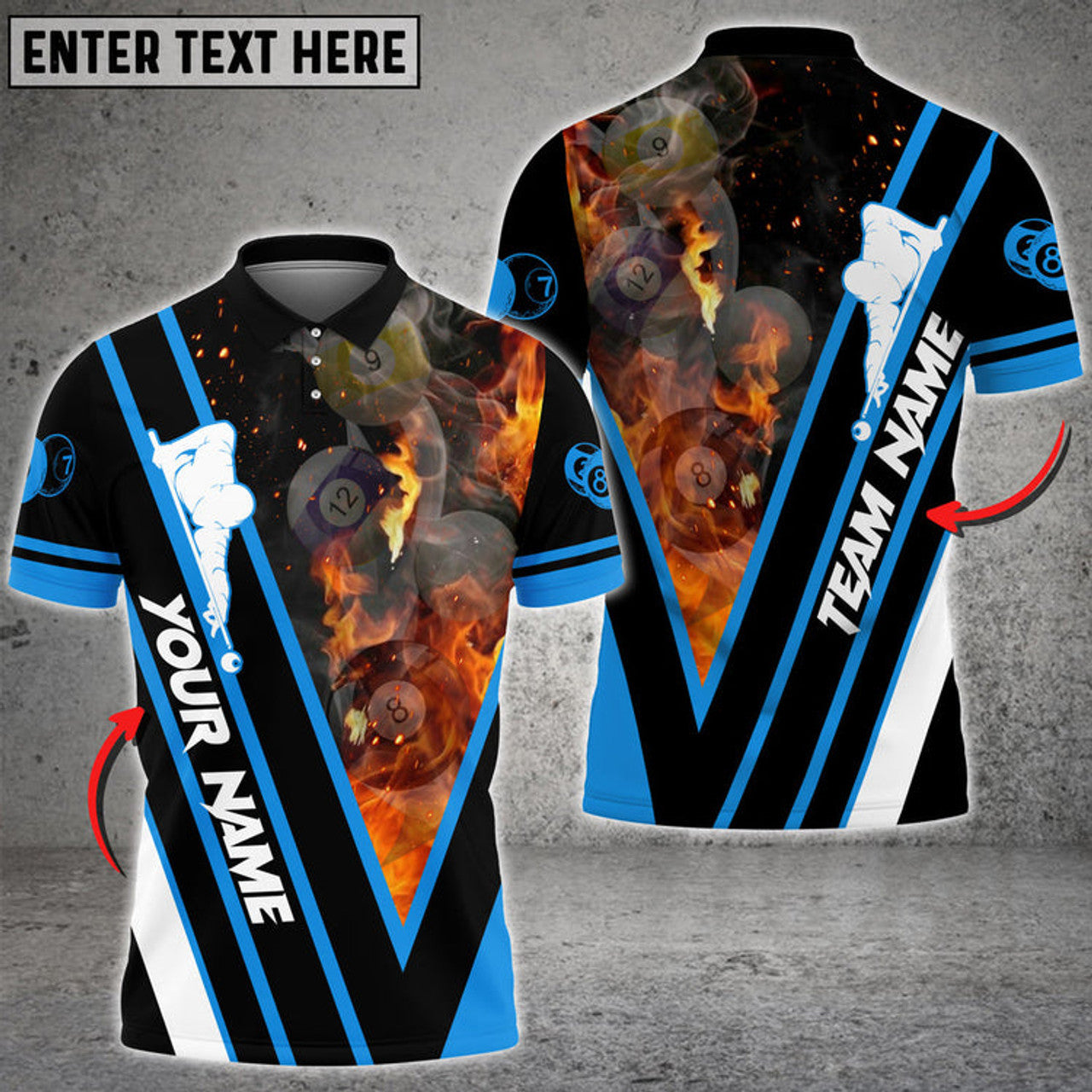 Custom Multi Color Billiards Flame Premium Customized Name 3D Polo Shirt