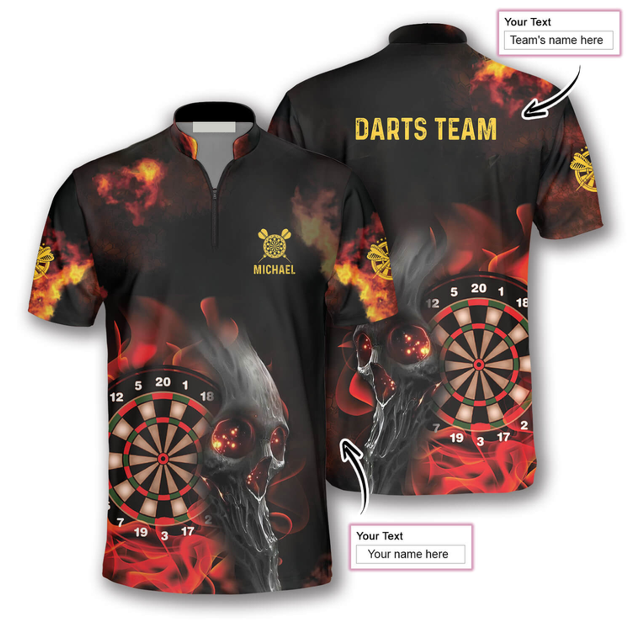 Custom Darts Fire Smoky Skull Custom Darts Jerseys For Men, Skull Dart Jersey shirt for Team